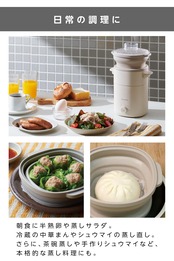 【栄養を逃さずヘルシーに調理】 蒸し器での調理は、油を使わず食材の旨味を引き出しながら栄養をキープできるのが魅力。野菜や魚をふっくら蒸し上げるほか、ゆでたまご作りにも最適です。温度や時間の調整が難しい温泉卵も、スイッチひとつで失敗知らず。絶妙なとろみのある温泉卵を簡単に仕上げられます。