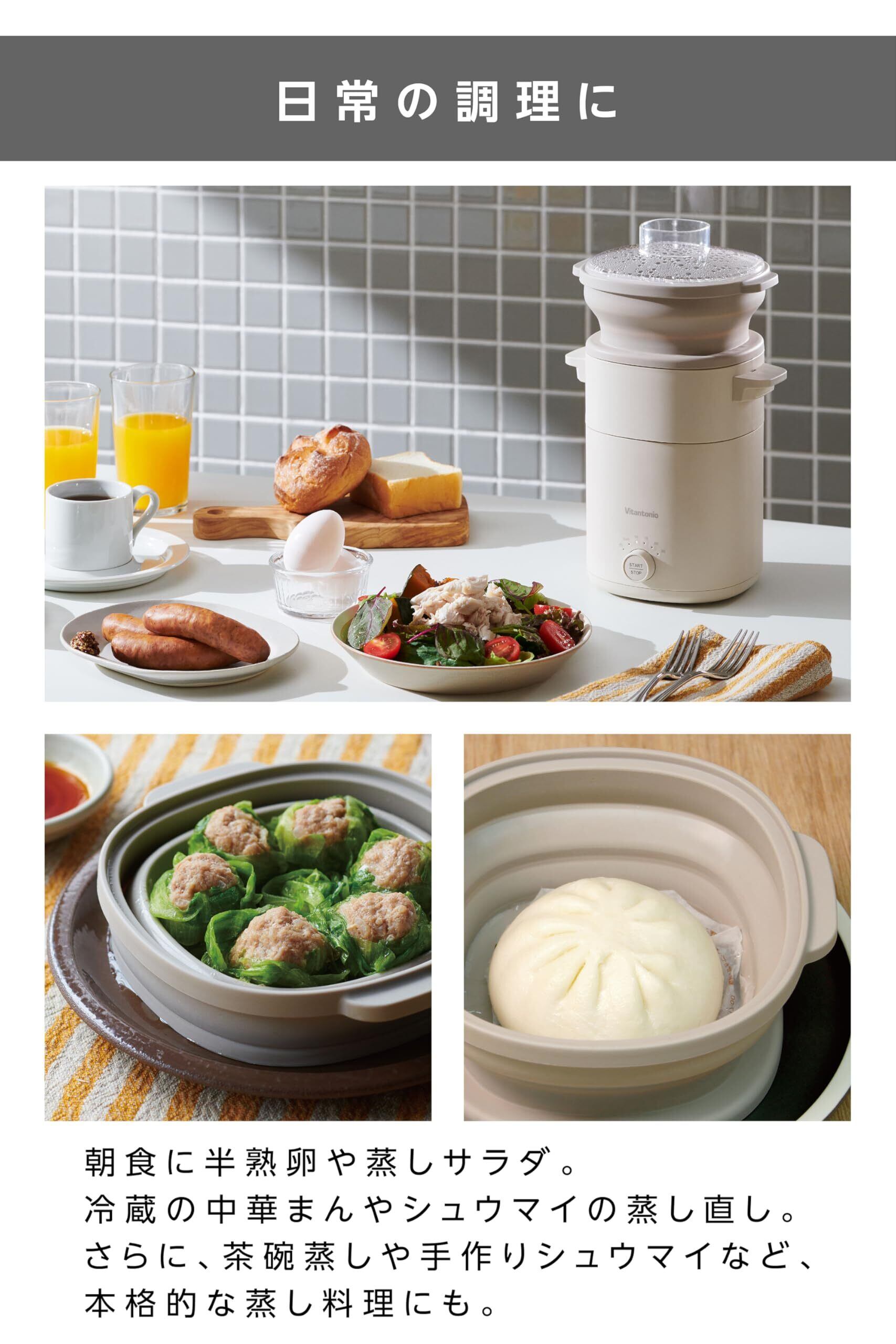 【手軽に本格蒸し料理!】 ビタントニオの「フードスチーマー」は電気タイプの蒸し器で、おいしくてヘルシーな蒸し料理が簡単に楽しめます。シンプルな操作性で、毎日のお弁当にもダイエットや筋トレご飯にもかんたんに蒸し料理を取り入れられます。