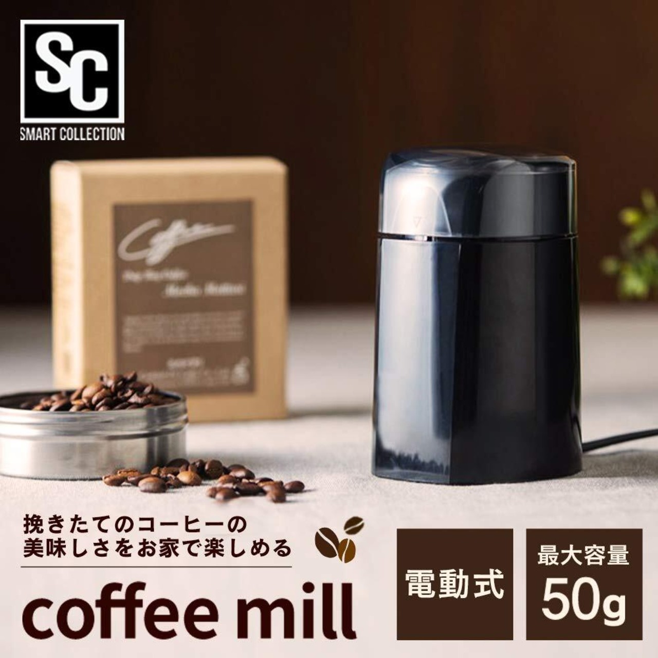 挽きたてのコーヒーをお家で。最大50gの豆を挽ける電動式ミルです。