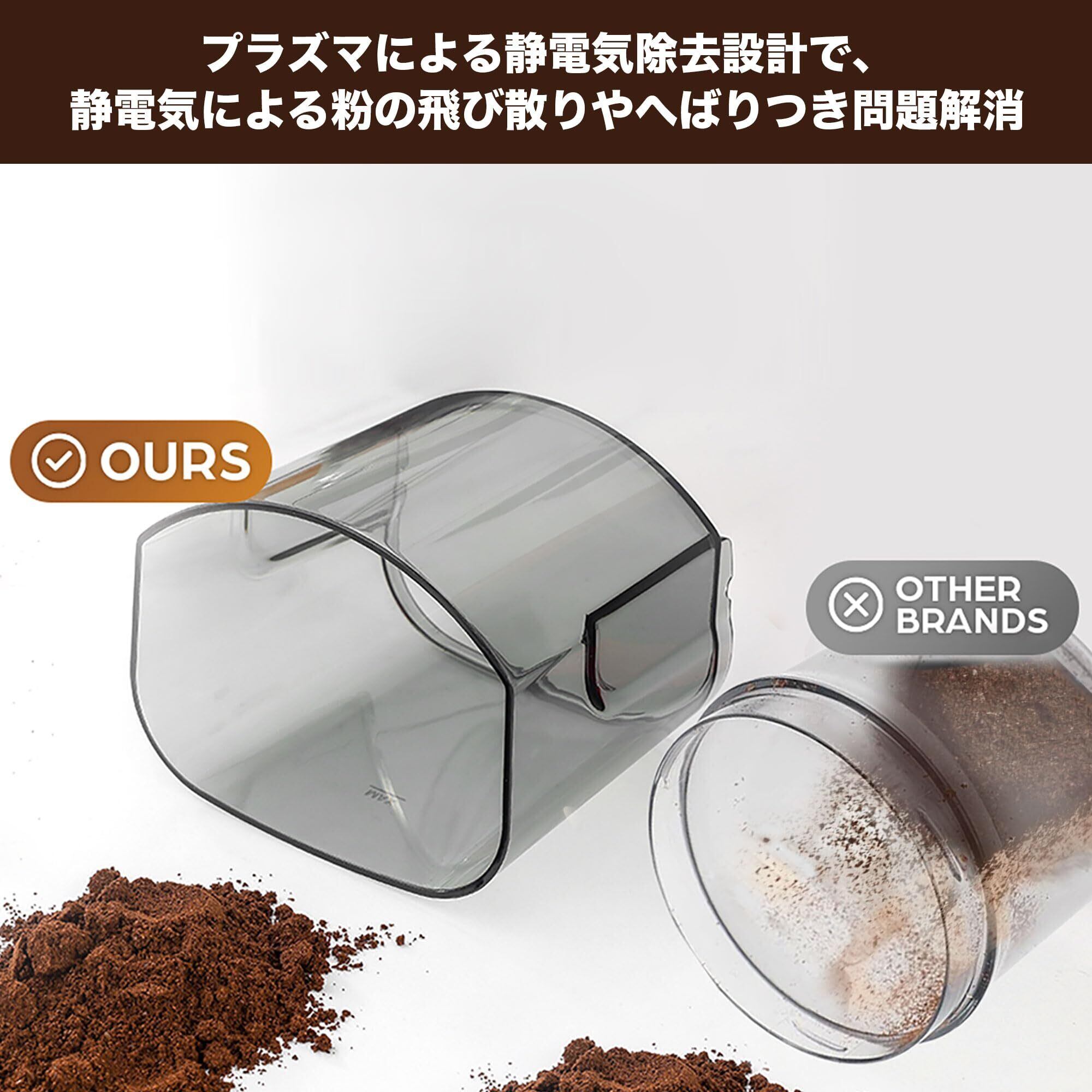 【粉が飛び散らない】BelleLifeコーヒー豆グラインダーは、集中直接粉末落下構造を採用しています。 粉飛びを防ぎ、余分な粉残りを防ぎます。 カップ内の粉が直接落ちるので余分な粉が残りません。 机上が散らからないので掃除がしやすく、コーヒーを作るのもスムーズに行えます。