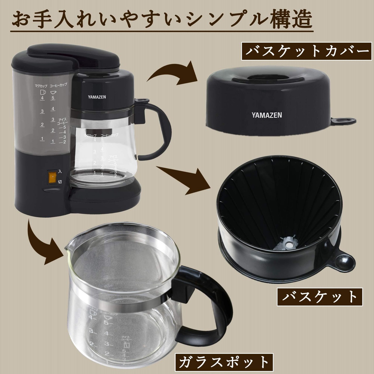 ●ガラスポット・バスケット・バスケットカバーは取り外して丸洗い可能。