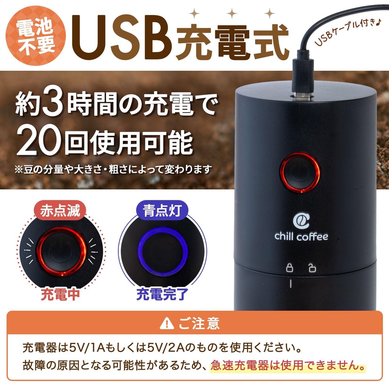 チルコーヒー【2秒で粗さ調整】 EM241 コーヒーミル 自動 セラミック刃 コニカル式 chill coffee アウトドア キャンプ 細挽き (ベージュ)