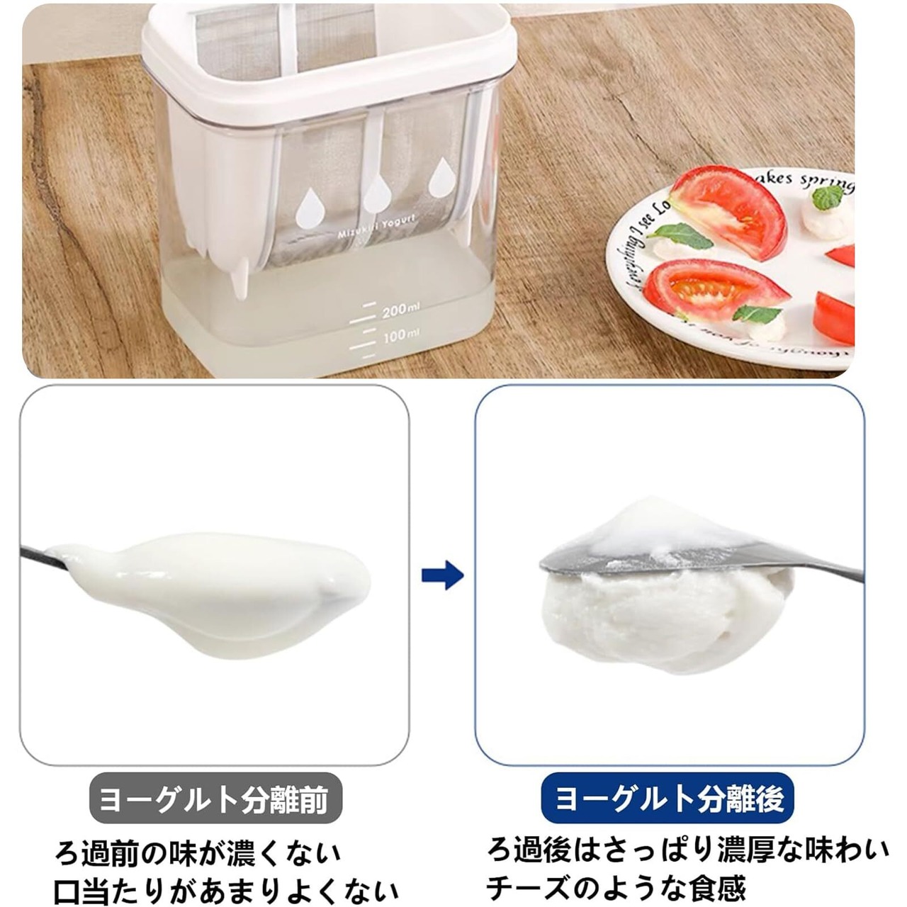 【高品質の素材】ヨーグルトストレーナーは高品質のABS材質を用いて製作され、丈夫で耐久性がある。細かいメッシュ、残留物を簡単に濾過できます。容器を密閉し、空気や湿気の侵入を防ぎます。 ヨーグルトを新鮮でおいしい状態に保ちます。