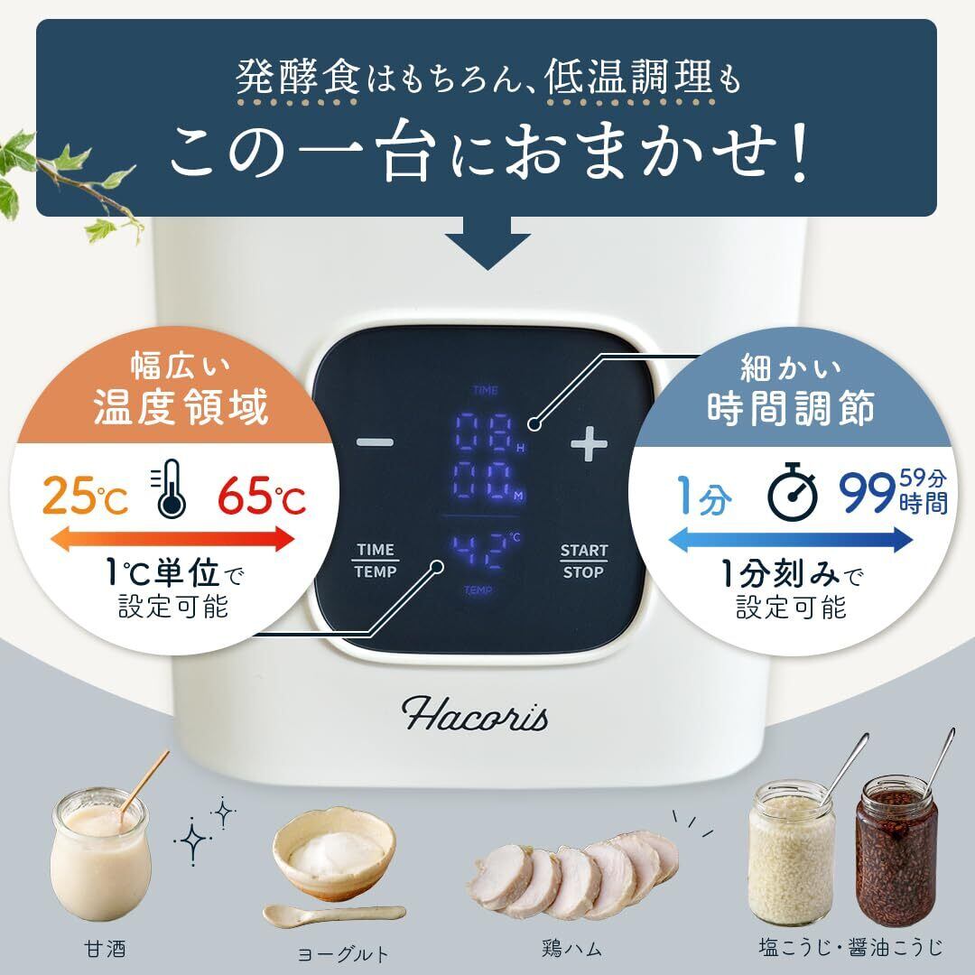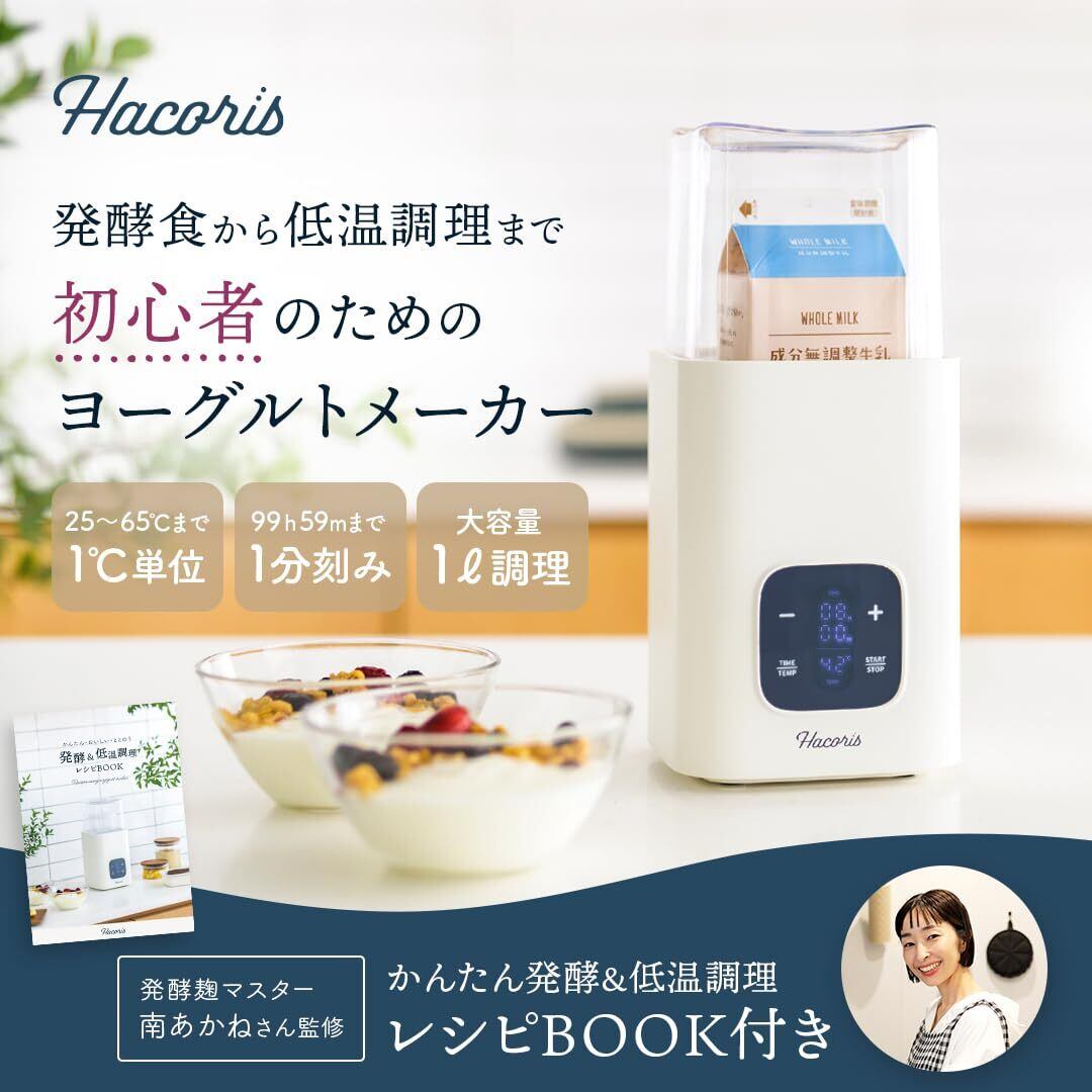 【Hacoris(ハコリス)】 ヨーグルトメーカー 甘酒メーカー 発酵メーカー | 甘酒 低温調理 塩麹 鶏ハム ヨーグルト | 軽量 初心者向け 完全静音 発酵食 | レシピBOOK付