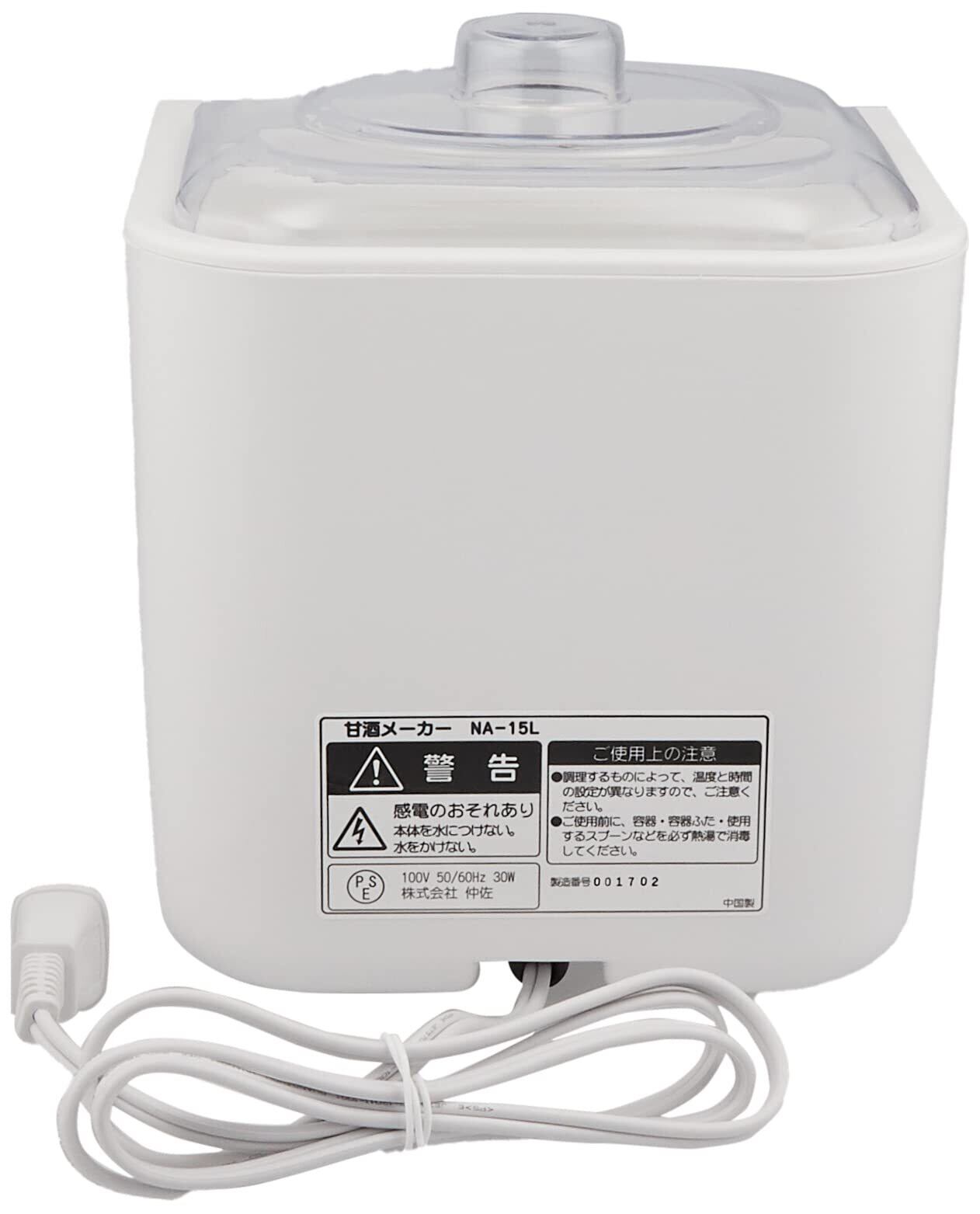 電源:AC100V 50/60Hz<br> 消費電力:30W <br> 安全装置:電流ヒューズ、サーミスタ<br> 温度設定範囲:25~65℃(1℃単位)<br> 時間設定範囲:1~48時間(1時間単位)<br> 容器容量:1000ml<br> 寸法:W168×D202×H190 mm<br> 電源コード:約1.0m<br> 使用環境温度:5~35℃