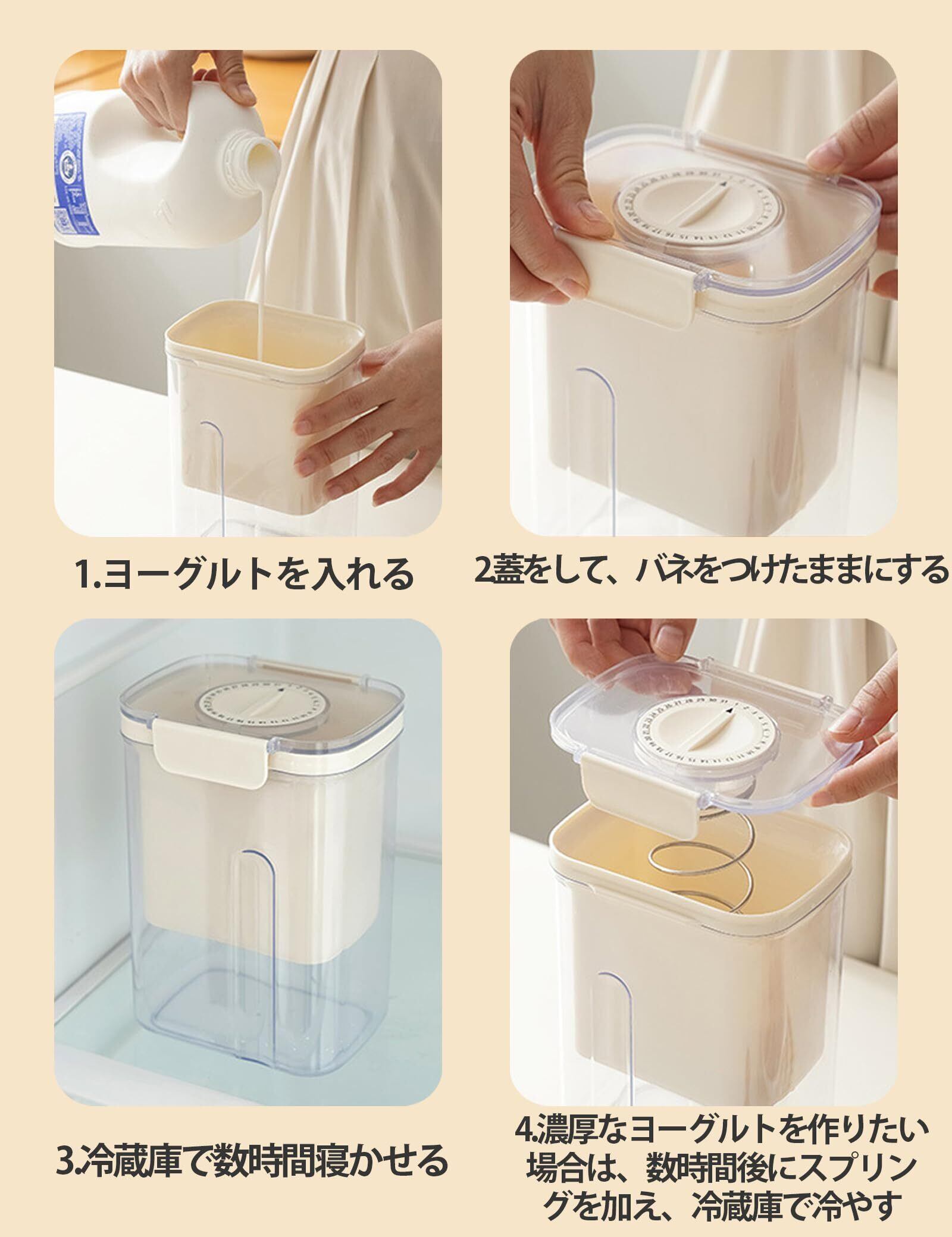 【注意事項】スプリングを入れずに数時間漉すと濃厚になります。 濃厚さが必要な場合は、スプリングを使ってコンパクトにし、さらに数時間漉すとよいでしょう(ヨーグルトを直接注ぐ際にはスプリングを入れないでください。ヨーグルトが上部から溢れる原因になります)。