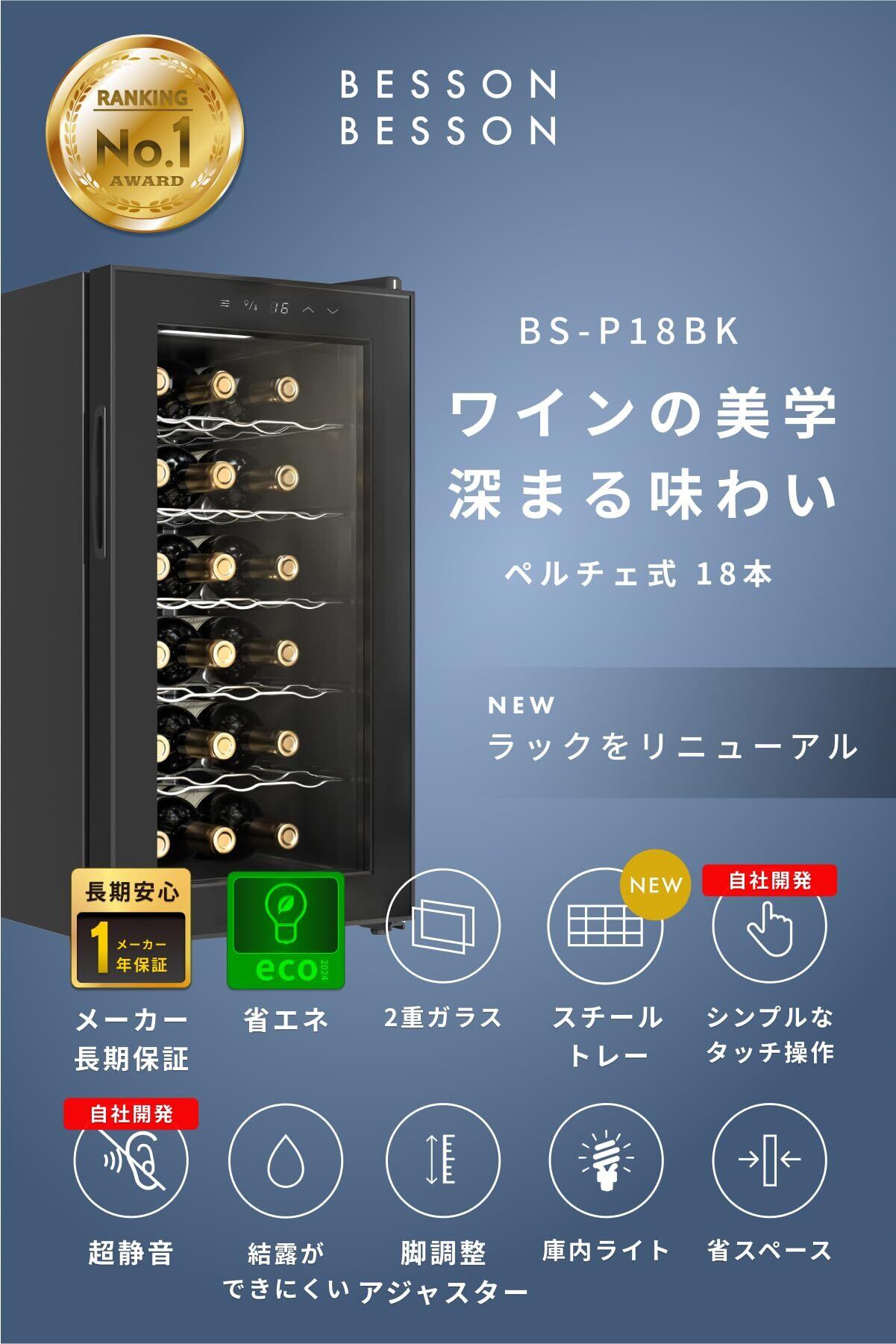 Besson ワインセラー 18本収納 小型 家庭用 日本製ペルチェ採用 縦置き ペルチェ式 【安定冷却+静音設計】 日本酒 スチールラック 遮熱+結露防止の2重ガラス 国内サポートセンター 省エネ LEDライト搭載 棚