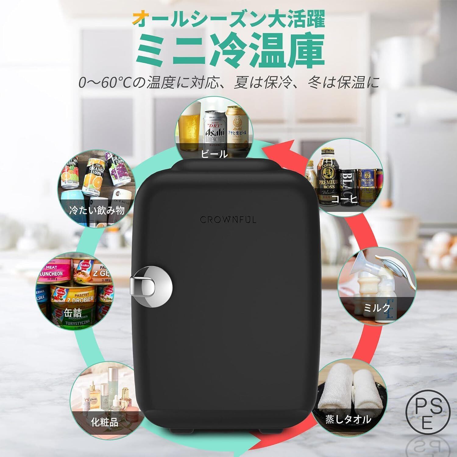 CROWNFUL 小型冷蔵庫 4L 冷温庫 【保冷・保温】 ミニ冷蔵庫 ポータブル 超軽量 持ち運び便利 一人暮らし ペルチェ式 静音 省エネ 室内車載両用 AC 100V DC 12V 給電コード付属 寝室用 職場 車中泊 キャンプ アウトドア 日本語取扱説明書