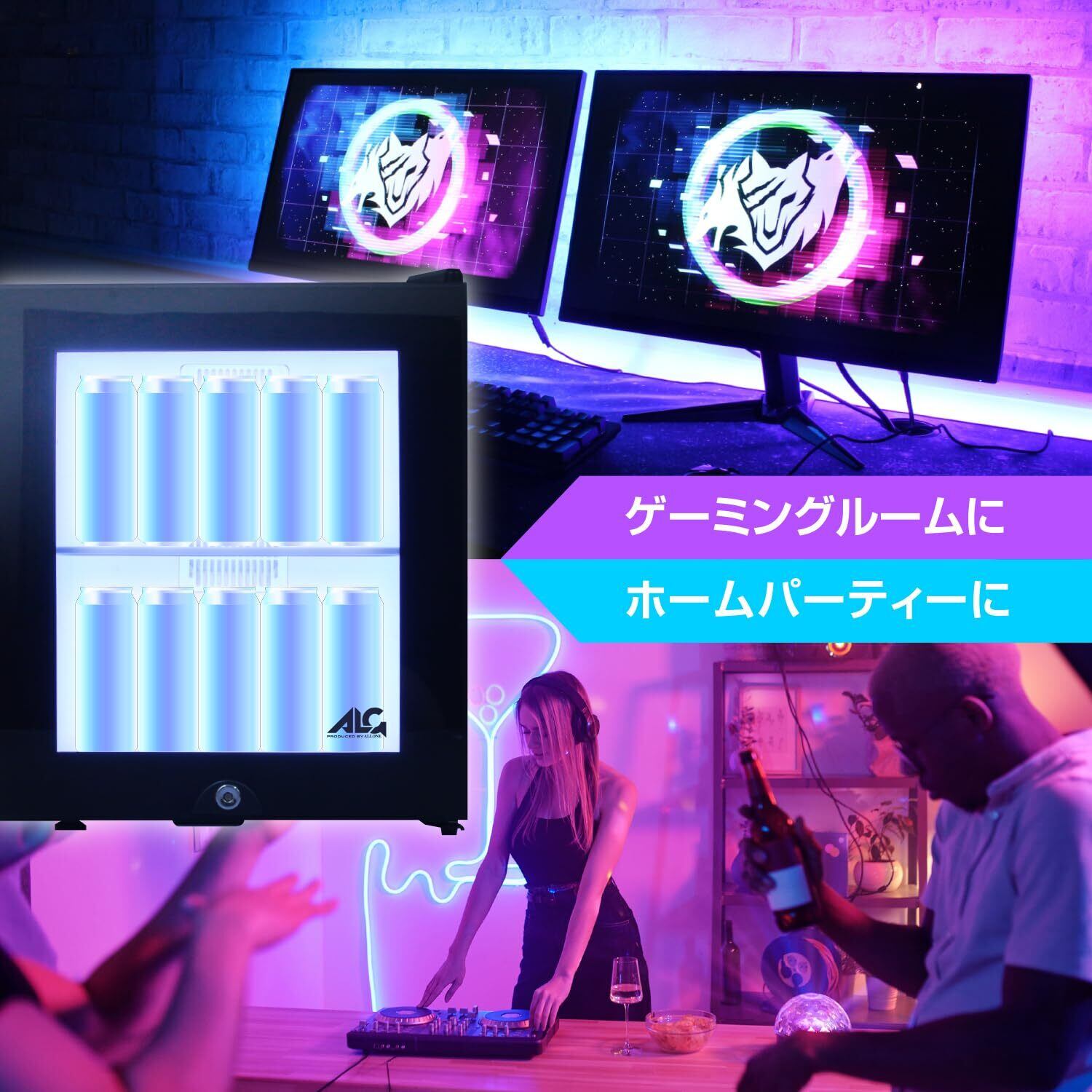 アローン(Allone) LED内蔵ミニゲーミング冷蔵庫30L 40×39.8×48.2cm 15色に光る カラフルなLED リモコン付き 1ドアタイプ コンパクト 静音性 e-sports ゲーミングルーム ALGA-GMMFL30L