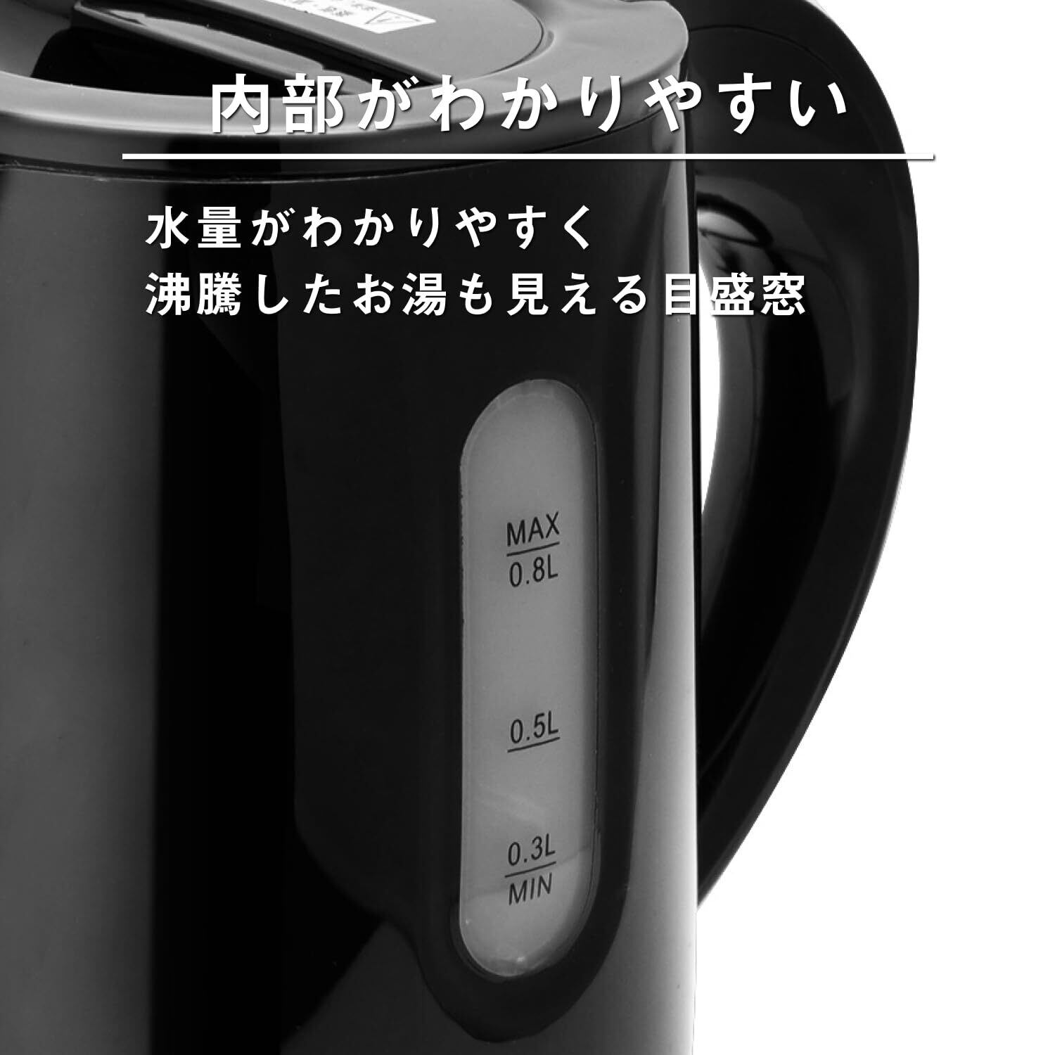 [プラス30日延長カード付] イトウ 電気ケトル コンパクトケトル 小型 0.8L 800W 自動電源OFF 空焚き防止 軽量 ホワイト×グレー