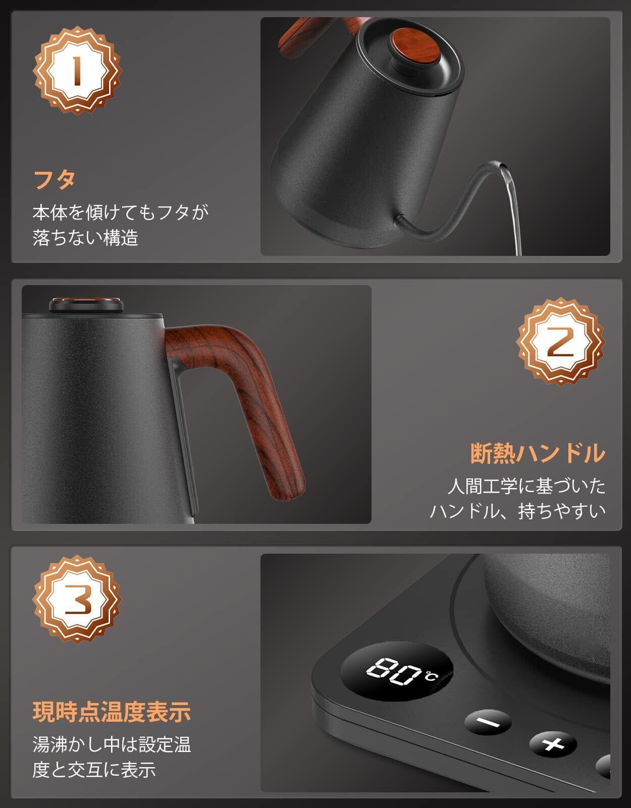 ハゴオギ (HAGOOGI) 電気ケトル コーヒー ケトル 1.0L 1200W 温度調節(1℃単位)/保温機能/空焚き防止 細口 ドリップ ポット (ブラック)