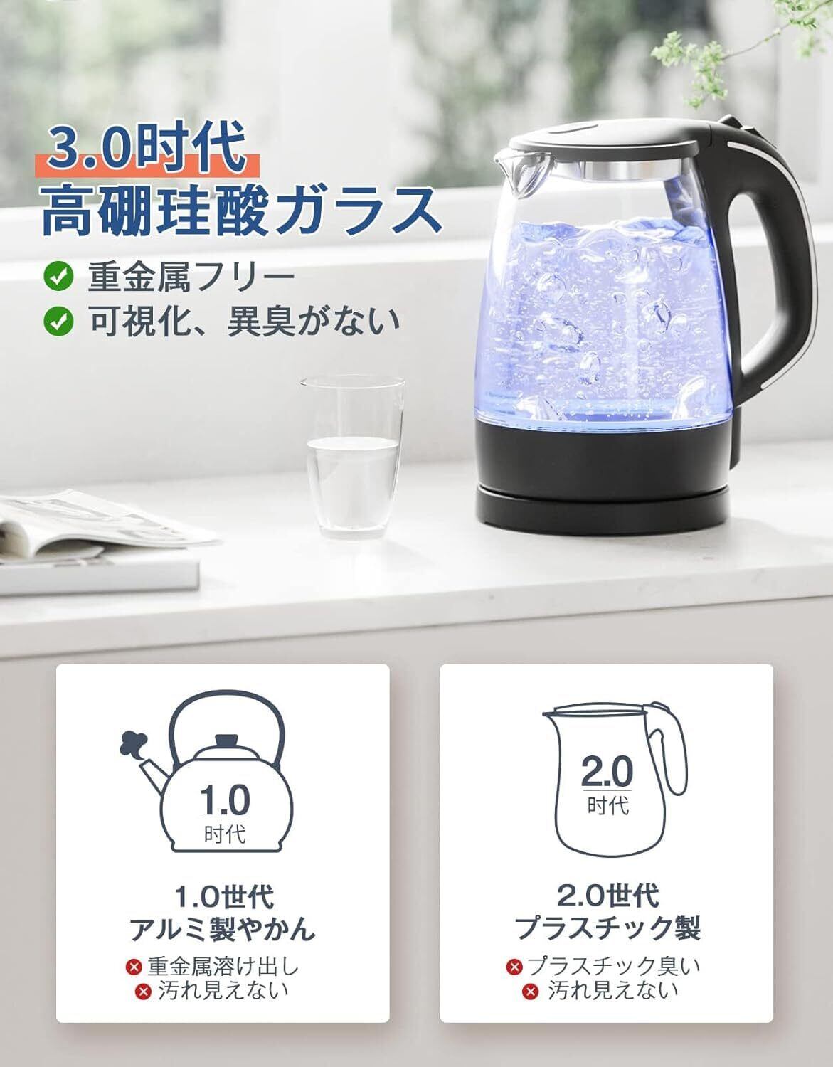 ✨【無臭&無害 健康と安全をお求めの方へオススメ!】 耐熱ガラス電気ケトルの3.0新時代到来!重金属による健康懸念を抱いていたアルミニウム製の1.0時代、加熱による溶解や有害物質の放出、プラスチック臭が気になるプラスチック製の2.0時代より、HAGOOGI電気ガラスケトルは、安全性を最優先に考え、透明で高品質な高硼珪酸ガラス素材を採用しています。耐熱ガラスはニオイ移りがしにくく、湯沸かし過程中は無臭で、有害物質の心配を一切排除!ハゴオギの電気ケトルは、贅沢な使用感を提供し、安心で安全な生活を送りたい方々にとってベストチョイス!