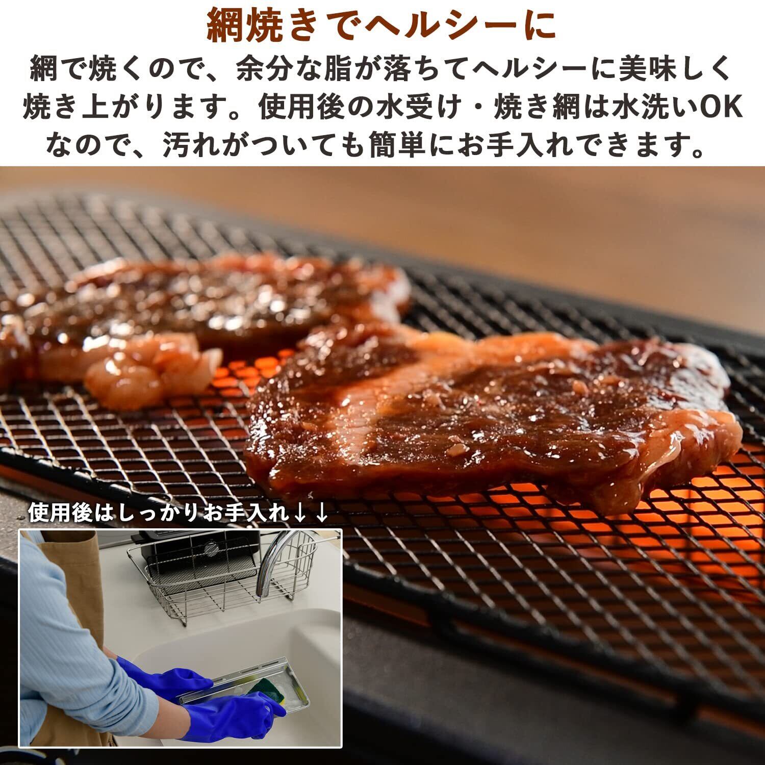 【お手入れ】付属の水受け・焼き網は水洗いOK。汚れがついてもしっかり洗い落せ、簡単にお手入れできていつでも清潔な状態でお使いいただけます。