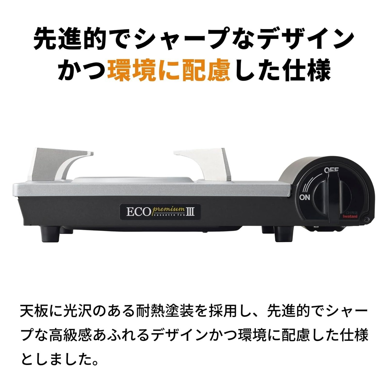 イワタニ Iwatani 岩谷 カセットコンロ カセットフー カセットガス エコプレミアムIII 内炎式 簡易コンロ 防災グッズ 卓上用 停電対策 日本製 ブラック CB-EPR-3-B