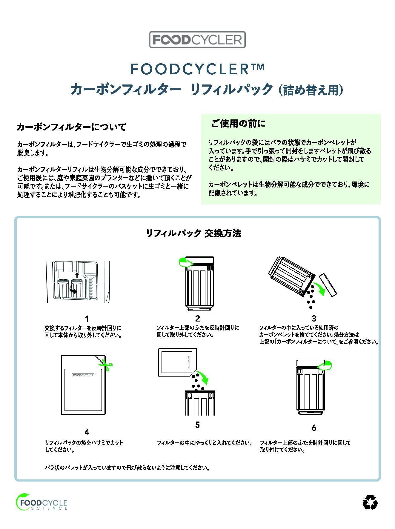フードサイクラー用のカーボンフィルターパック8個セット。毎日使用した場合の交換目安は約3ヶ月です。活性炭を含んでいるので稼働中のニオイも取り除きます。カーボンパックのみ交換なのでとてもエコです。