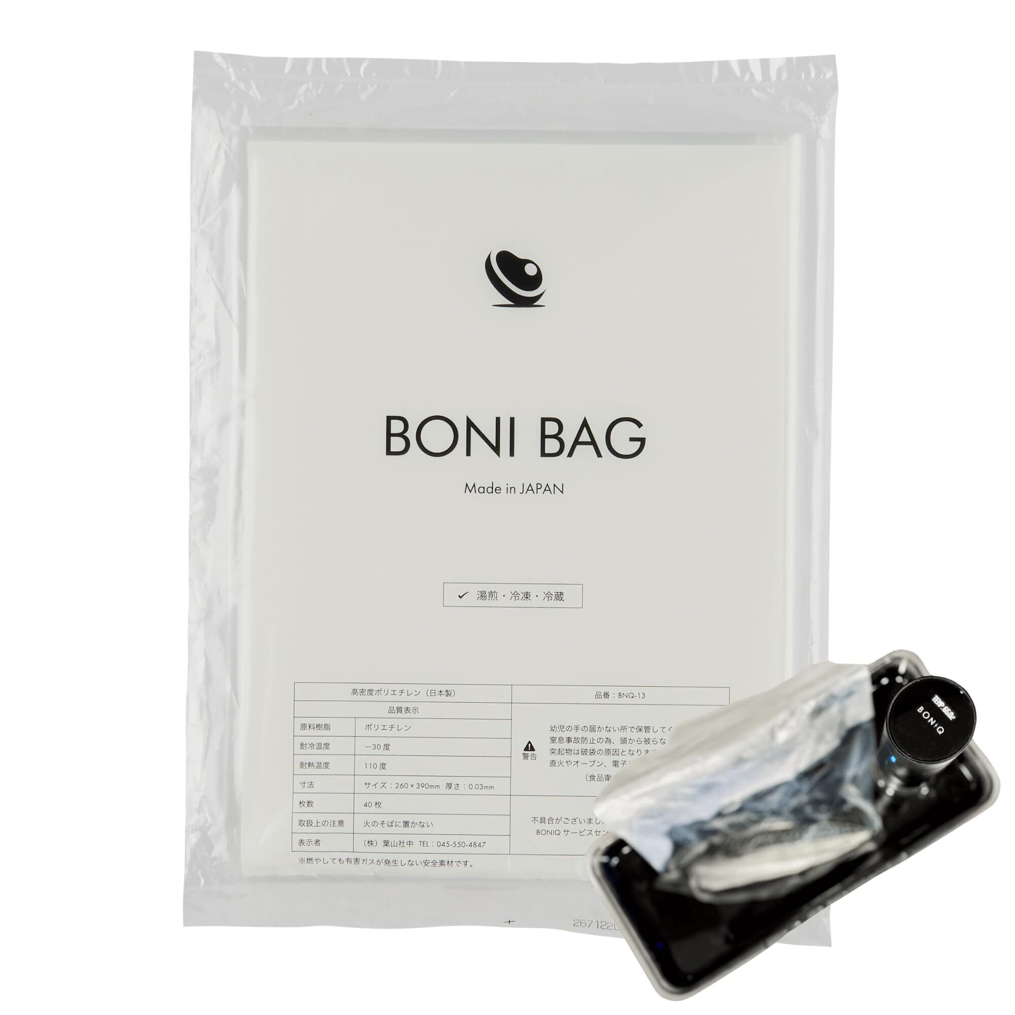 BONIQ ボニーク 低温調理用 耐熱袋 BONI BAG 日本製 湯せん 冷凍 冷蔵 40枚入り 食品用 ポリ袋 低温調理 低温調理器 袋 ジップ不要 食品衛生法適用済 39cm×26cm 0.03mm -30℃~110℃