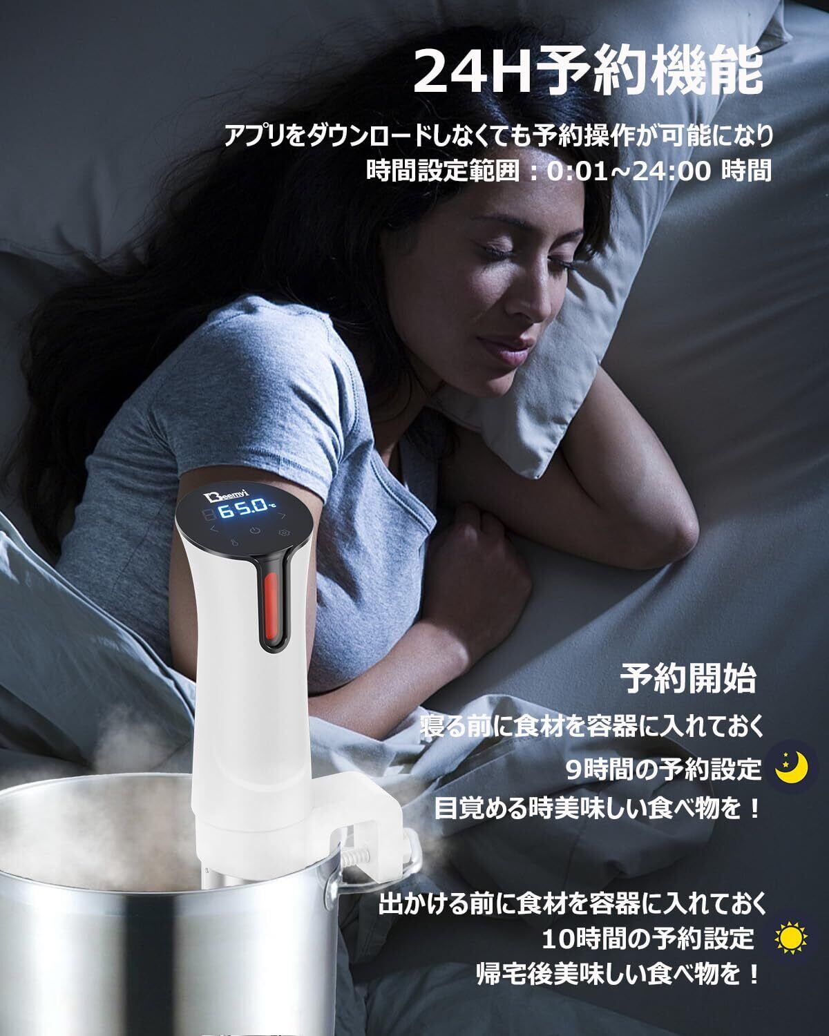 Beemyi 低温調理器 真空調理器 スロークッカー 24時間 予約機能付き 低温調理器具 タッチパネル 1000Wハイパワー 水温精確制御クッカー コンパクト軽量 家庭用 日本語取扱説明書