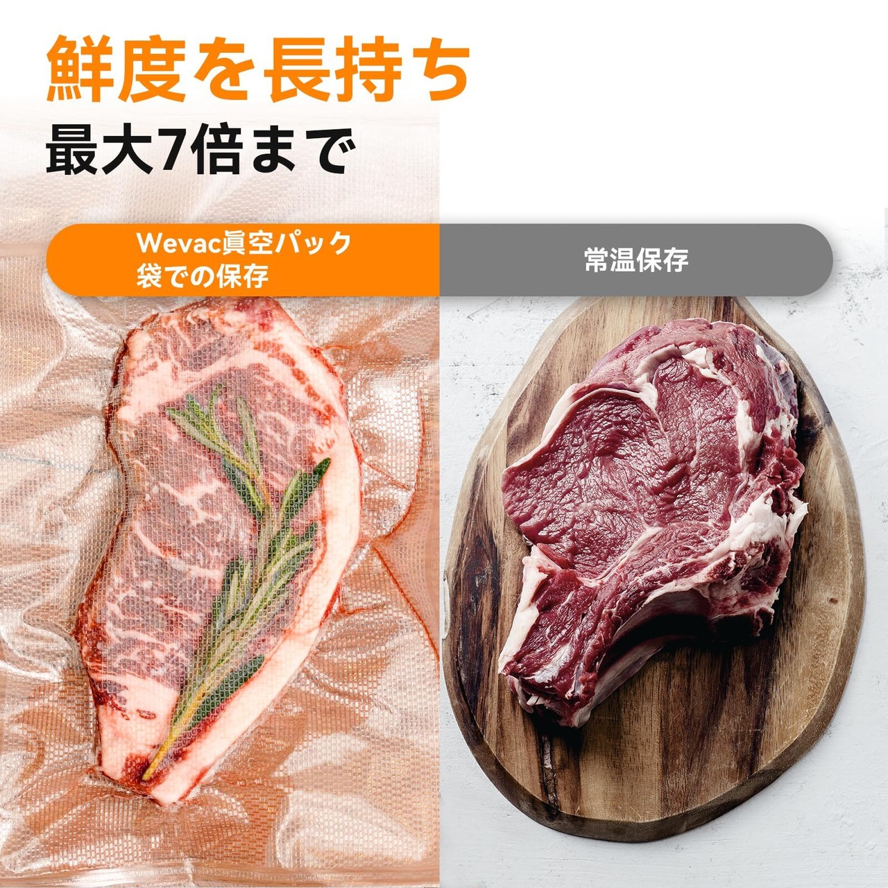 【片面エンボス加工で脱気しやい】Wevac真空パック 袋は片面エンボス加工で脱気しやすく、特別的なチャネルで最大限に空気を取り除くことができ、密閉性が高いです。もう片面は滑らかで透明で中身がよく見えます。