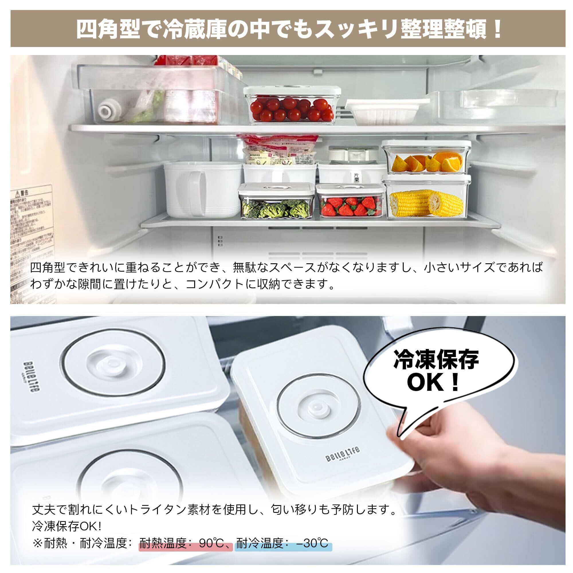 BelleLife 真空保存容器 3個セット 食品真空保管ボックス 保鮮容器 冷蔵庫オーガナイザー クリスパー 家庭用 鮮度長持ち 漏れ防止 食材保存 気密 果物 野菜 パン スナック用 保存容器の交換用品セット 真空パック機なし