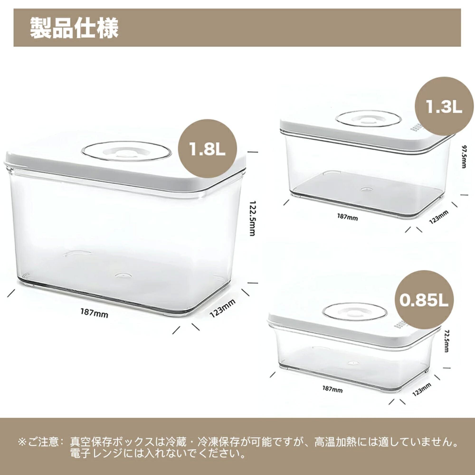 ■鮮度保持効果抜群: 真空保存容器は、空気をしっかりと排除することで食品の酸化を防ぎ、鮮度と風味を長く保ちます。
