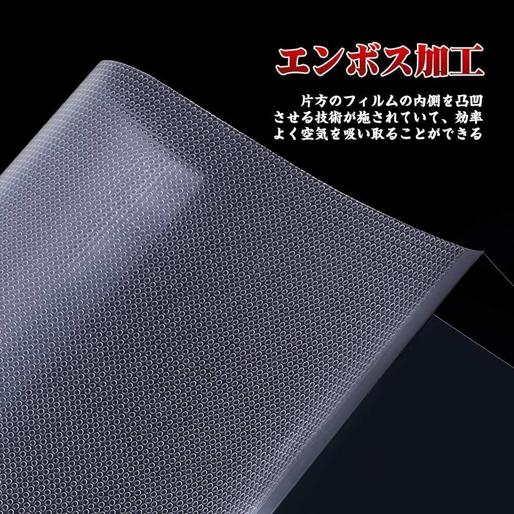 【デザイン】片面はドットデザインで、内側にはエンボス加工され、もう片面は滑らかで透明です。エンボス加工という、フィルムの表面を凸凹させる技術が施されています。真空パック器で上下から圧をかけ、密着させた際に凸凹の隙間から空気を吸い取リます。8層構造のフィルムで、密閉性が高いです。袋厚も90μmある為、破れに強いという特徴があります。通常保存よりも雑菌の増殖を約1/50に抑えるから、食品の鮮度が長持ち可能です。※食品を保存する際は、真空パックした後、冷蔵庫や冷凍庫に保存してください。殺菌作用はありませんので、保存には十分注意してください。