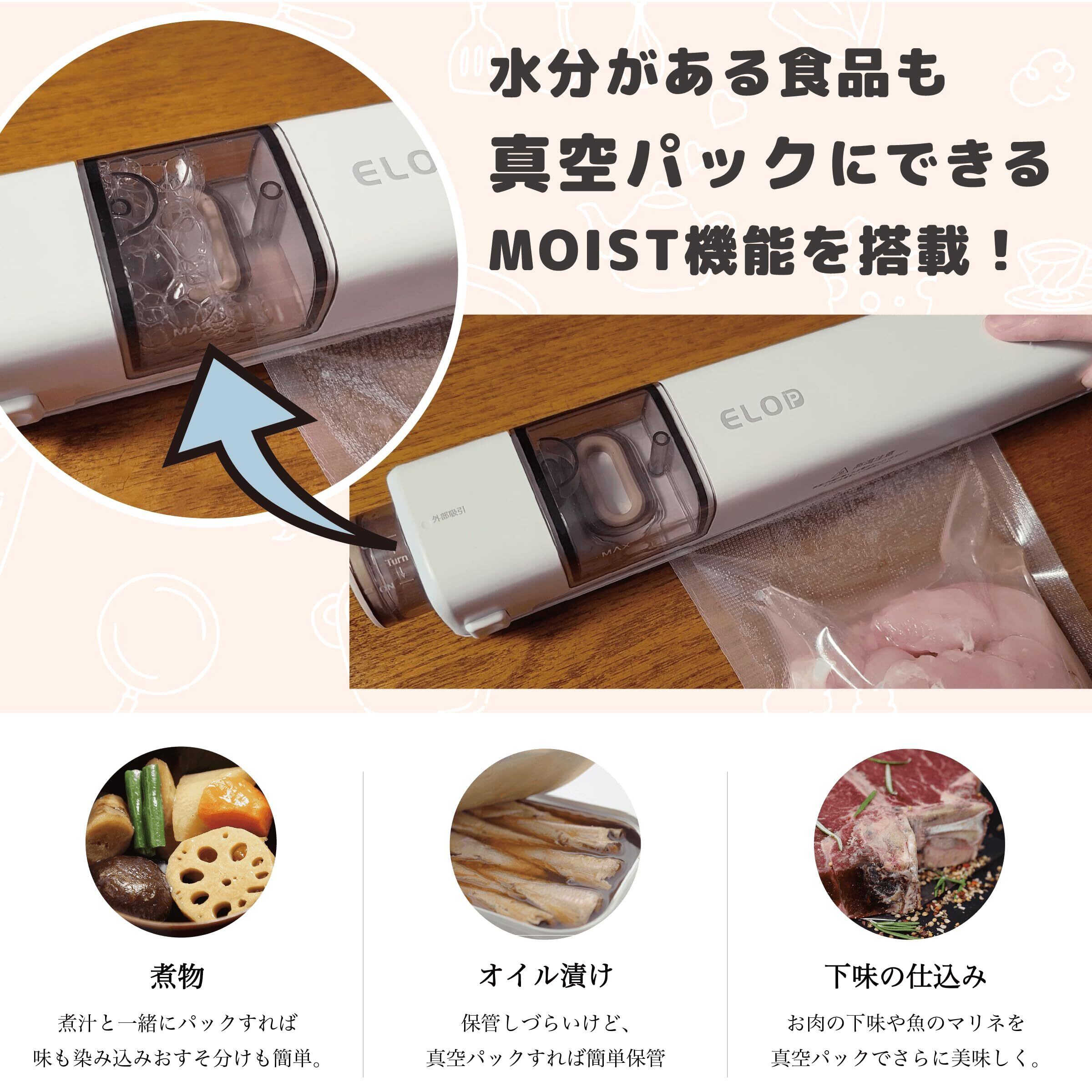 【ELOD Suseal Home マスターセット】コードレス真空パック機 70kpa 【充電式 & ハンズフリー】3つのモード搭載(自動吸引・シーリング・外部吸引) 真空保存シーラー 浮かせる収納 マグネット 本体+専用袋3枚付き+Mサイズ50枚+AIR VALVE10枚セット 日本国内安心サービス (ホワイト)