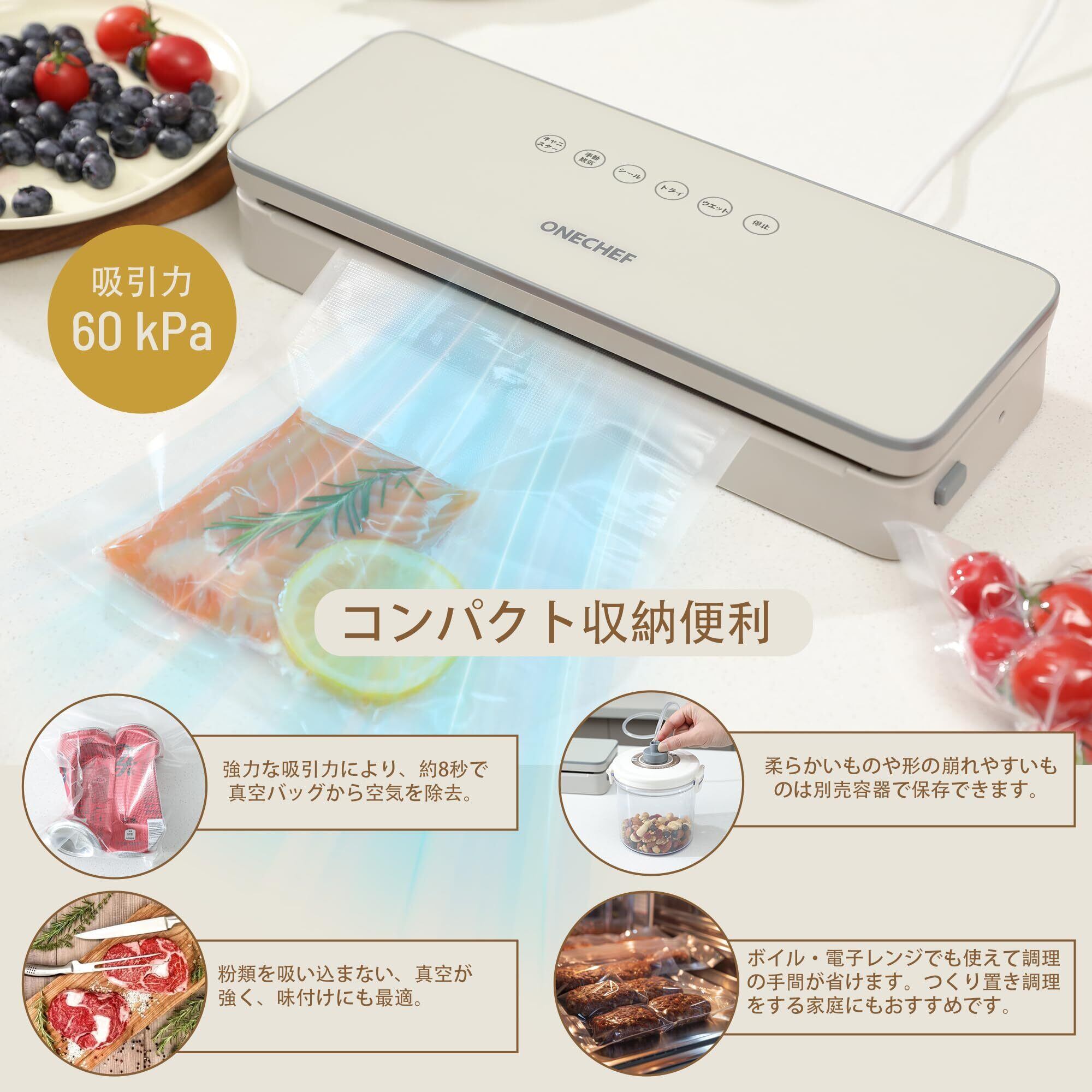 【鮮度を10倍以上持ち】60kPa吸収力で空気を迅速かつ清潔に抽出、ラップの保存より雑菌の増殖を約1/50に抑制することができ、湿気やホコリを有効的に遮断し、酸化などの劣化を効率的に防ぎ、真空脱気により鮮度を最大10倍持ち、賞味期限を10倍延ばし、食品の品質保持に貢献しご家族の健康もお守りします