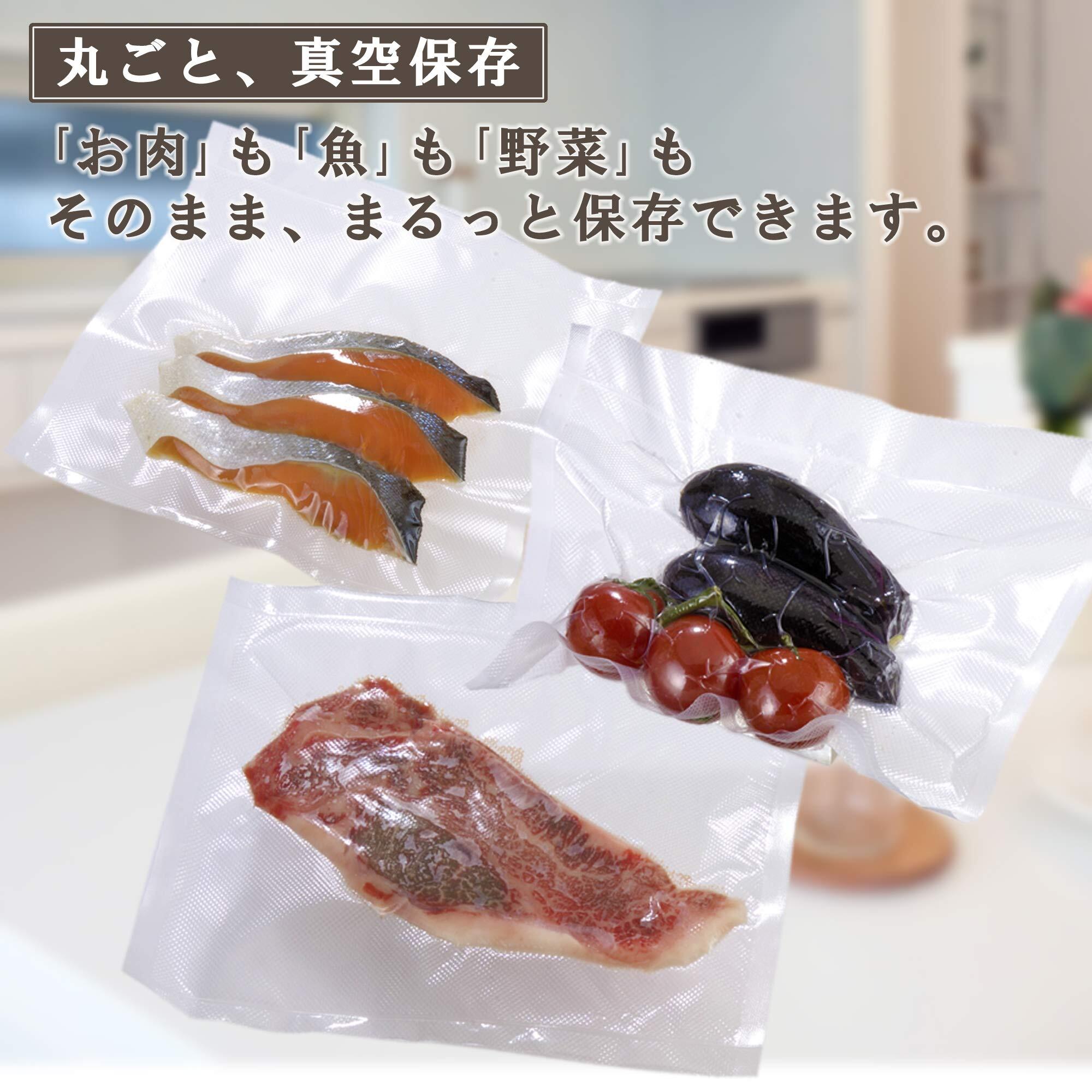 肉、野菜、魚をそのまま丸ごと真空保存できる。