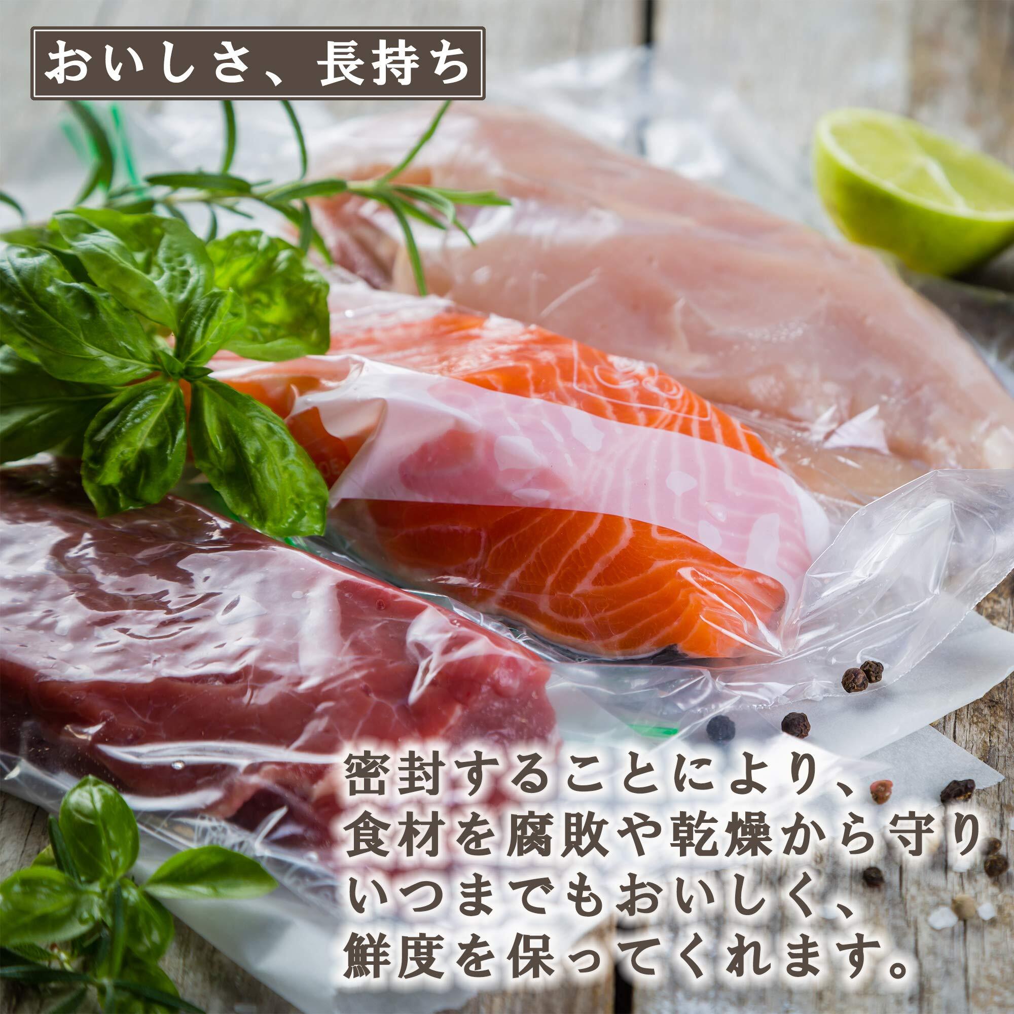 脱気密封することにより、食材を乾燥や腐敗から守り、おいしさを保ったまま長持ちさせる。