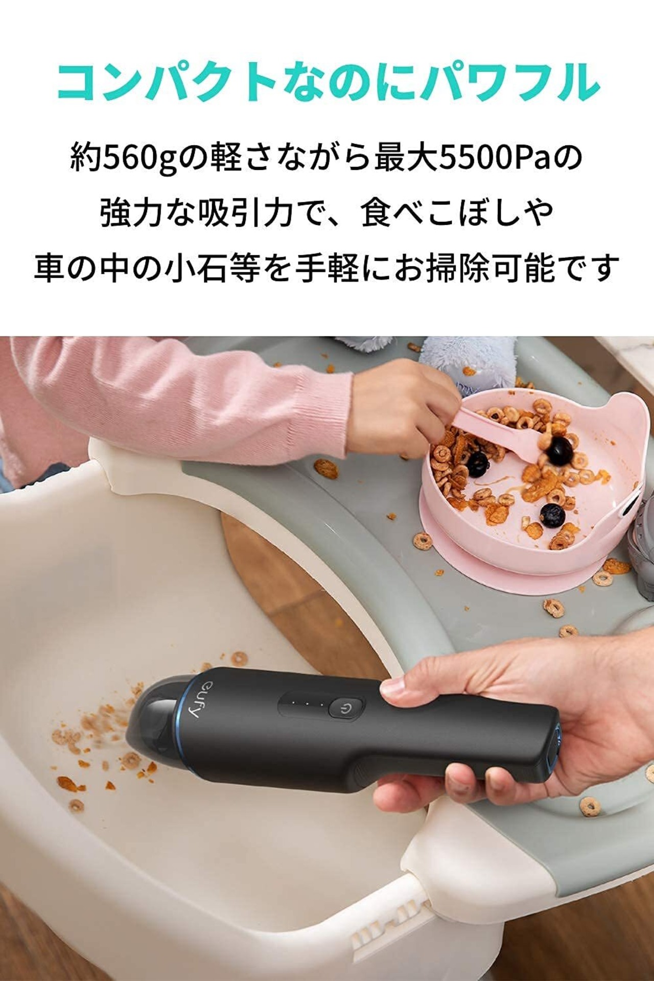Anker Eufy (ユーフィ) HomeVac H11(ハンディクリーナー)【コードレス/充電式/軽量設計 / 5500Paの吸引力 / USB充電/コンパクトサイズ/車用/コンビネーションノズル付属】ブラック