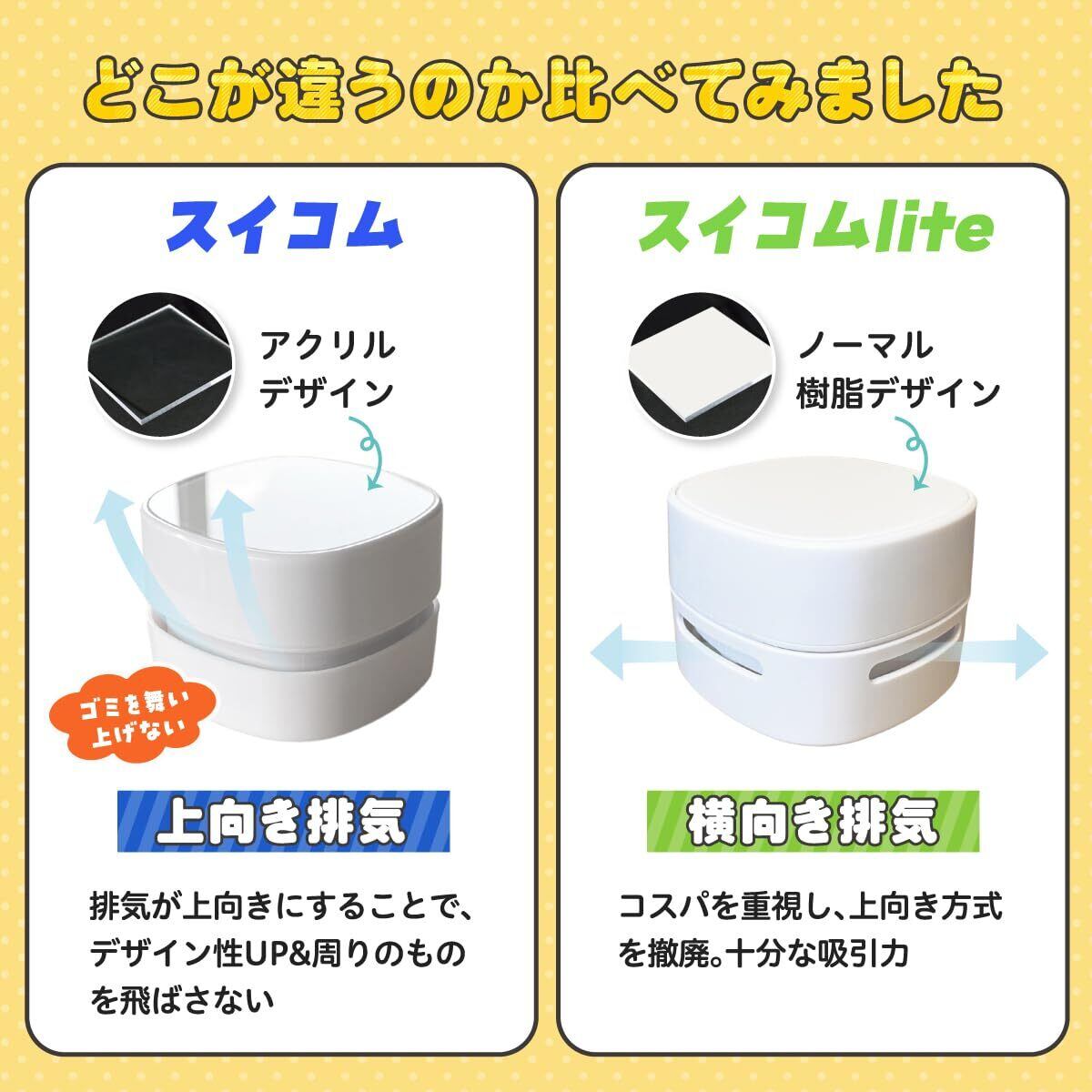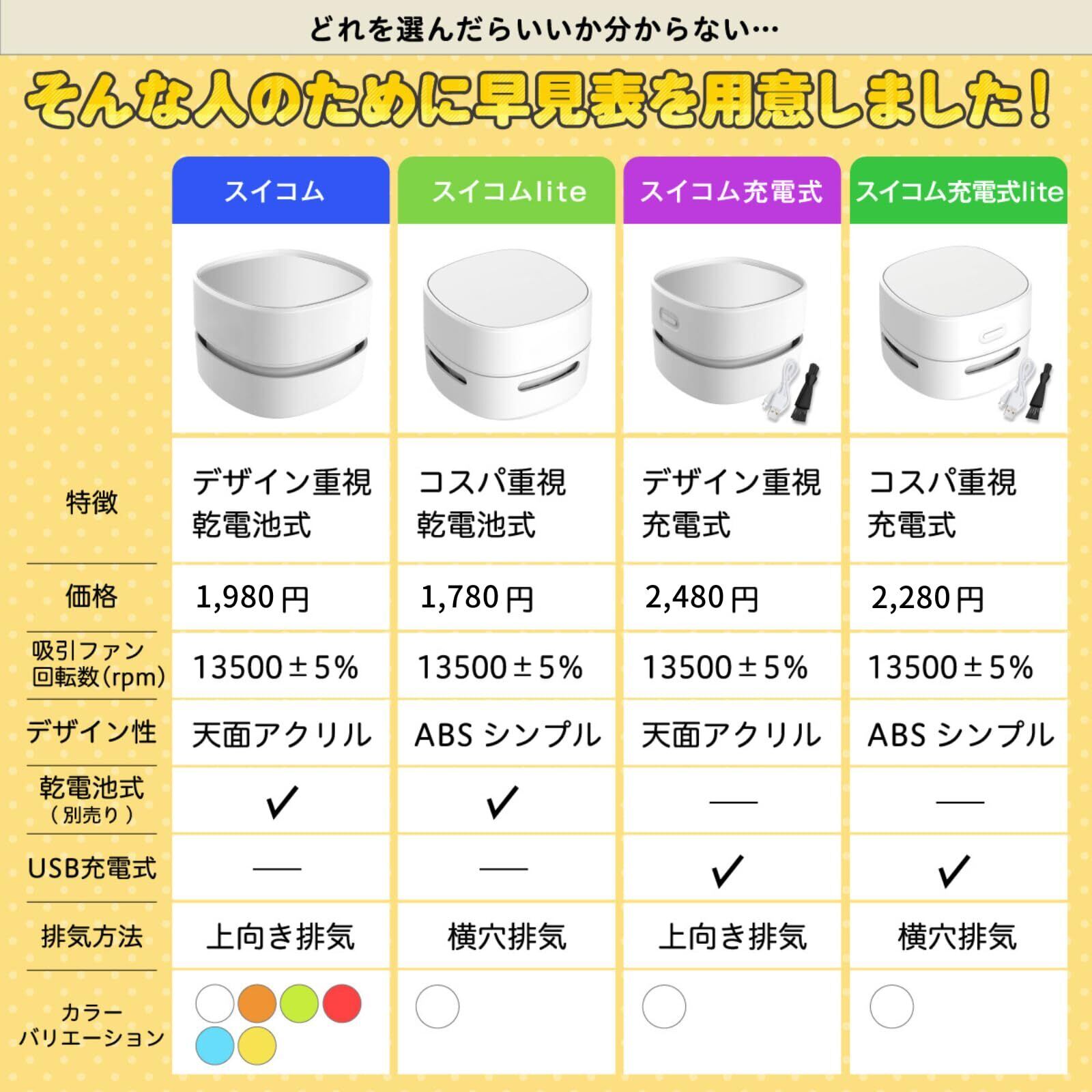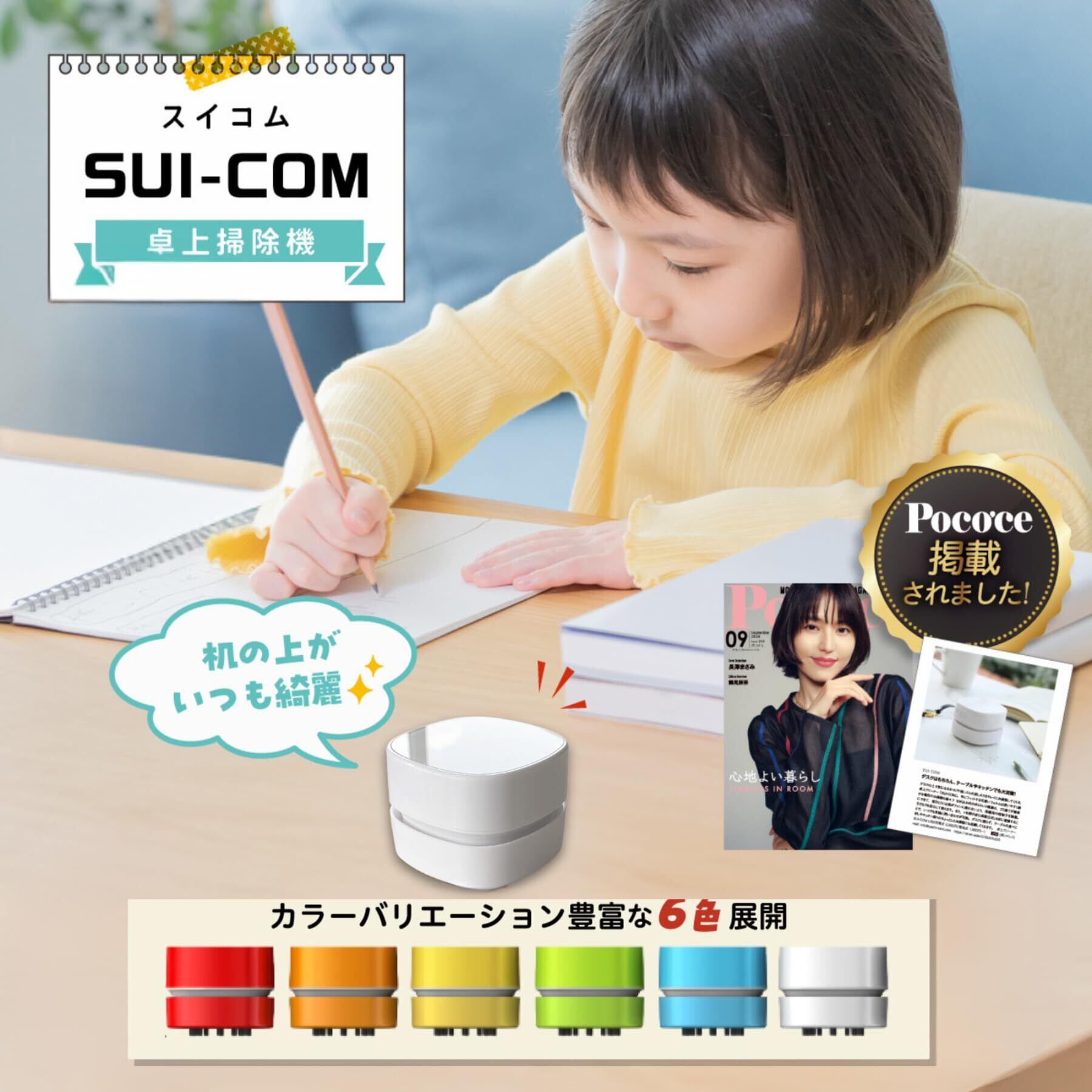 【使いやすさとデザインにもこだわりました】 “SUI-COM”は、使いやすさと可愛いデザインにもこだわりました。子どもから大人まで年齢問わず手にフィットするような形状で、細かな場所の掃除もしやすくなっております。また、化粧箱、カラーバリエーションにもこだわり、年齢層問わず、コスパよく喜んでもらえるプレゼントとしても最適な商品となっております。
