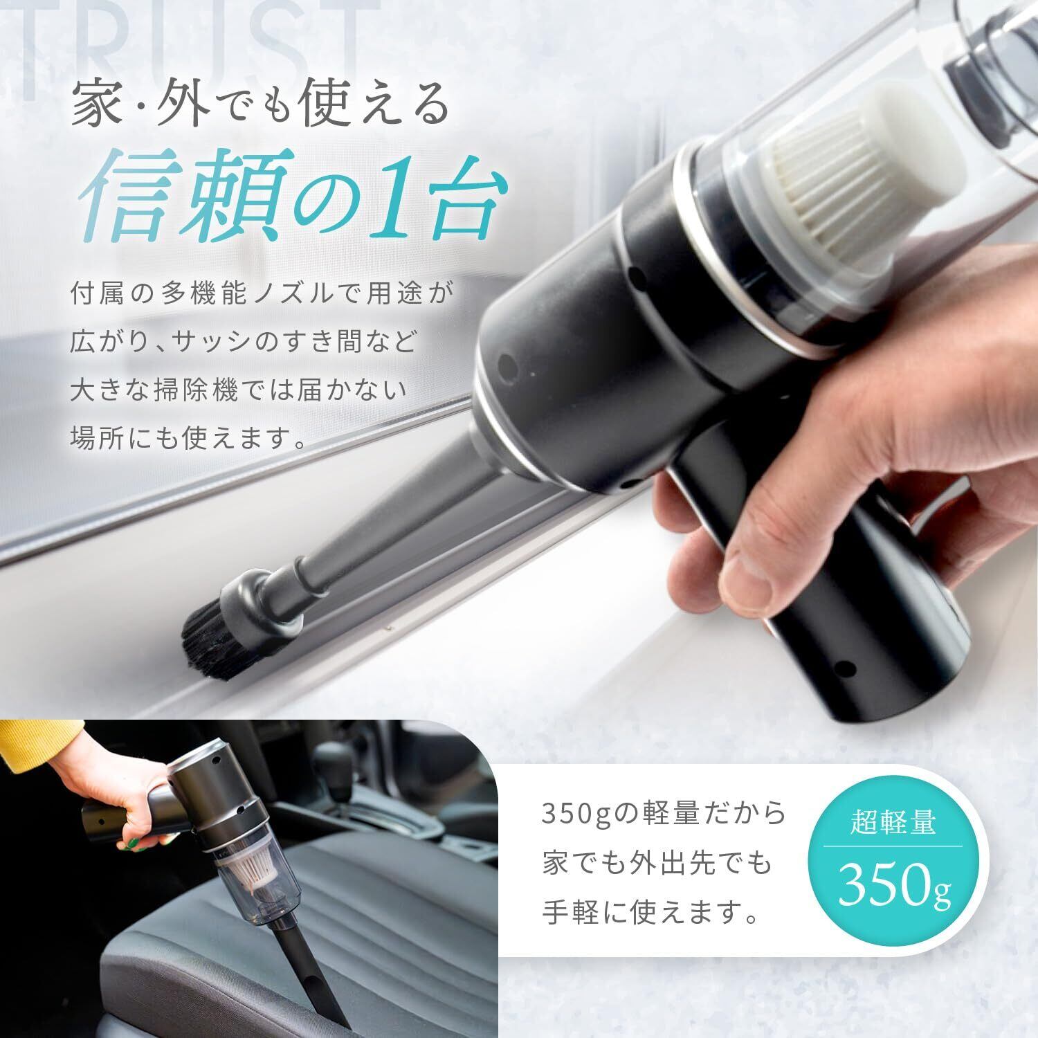 【超軽量!】本体重量はなんと約350gととにかく軽いです!ちょっとした掃除にもさっと取り出して使え、手が疲れることがございません。車に持ち込んでの掃除もラクラクです