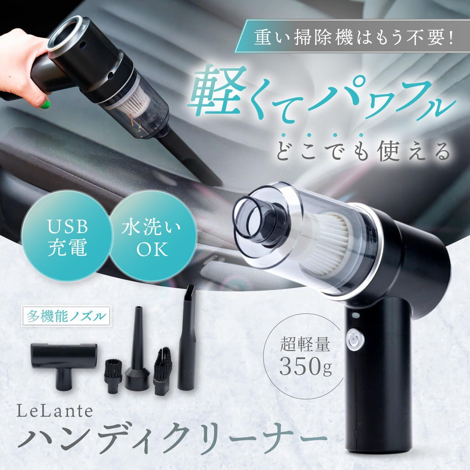 LeLante ハンディクリーナー ハンディ掃除機 車用掃除機 コードレス ブロワー USB-C 車 充電式