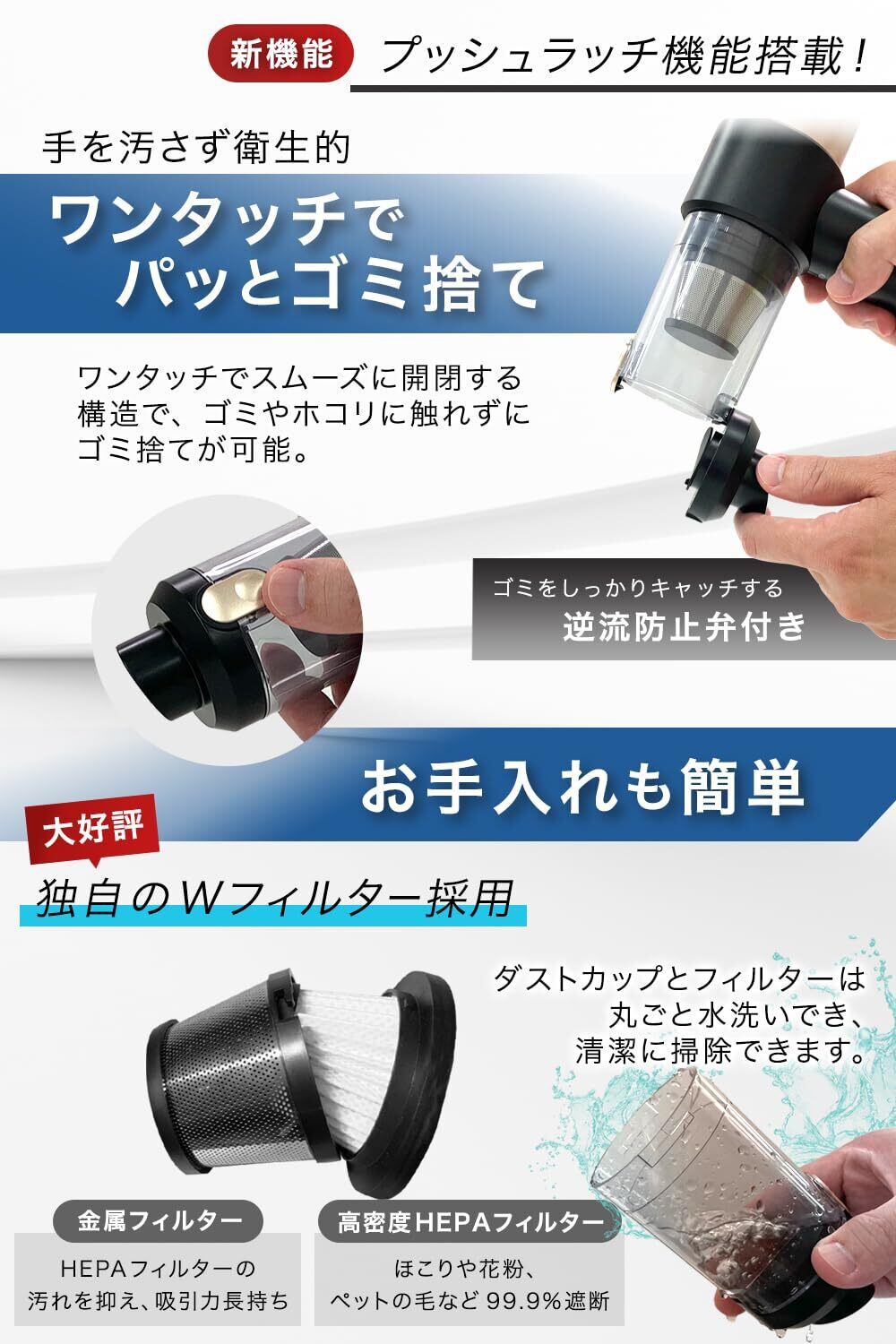 【 お手入れカンタン&パッとゴミ捨て 】金属フィルターとHEPAフィルターを搭載した独自のダブルフィルター搭載で、HEPAフィルターが汚れにくくなりました。また、ダストカップを開けずに開くことができ、集めたゴミはサッと捨てられます。ダストカップとフィルターは水で丸洗いが可能なので、いつも清潔に保てます。