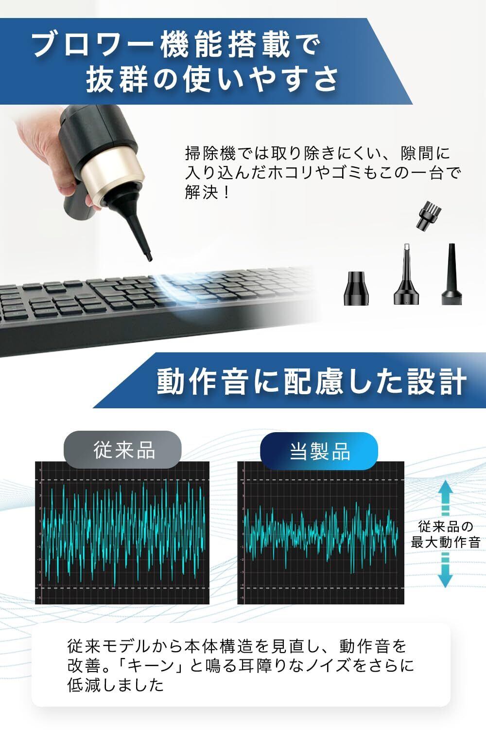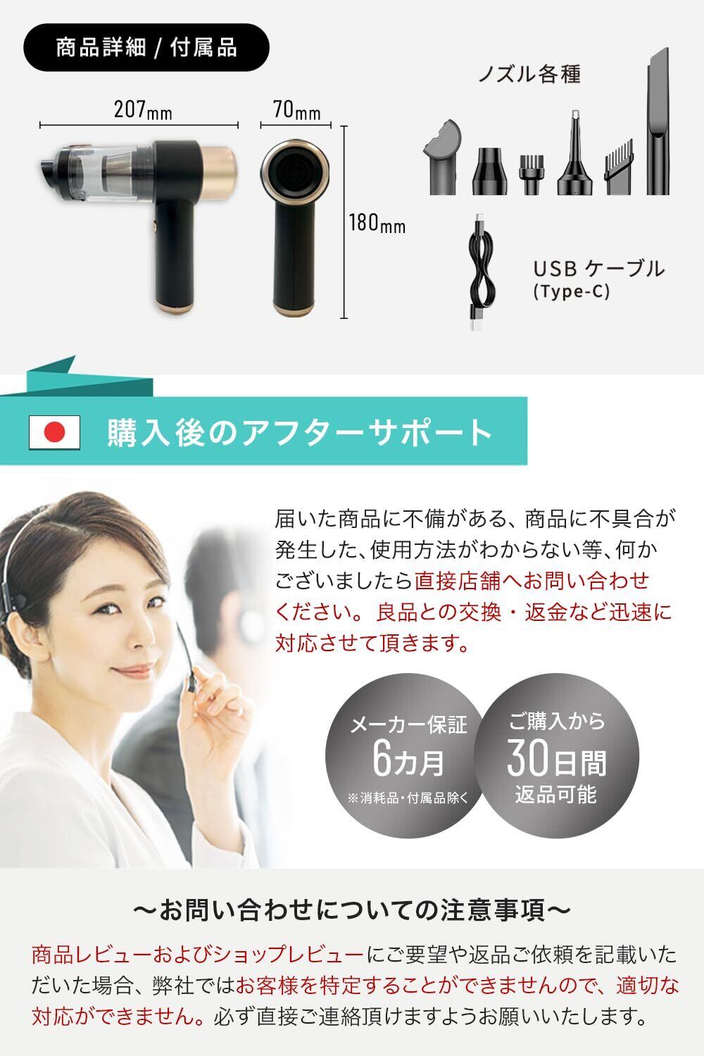 【 仕様 】バッテリー:リチウムイオン、充電方式:USB接続(TypeC)、連続稼働時間:約20分 (満充電 3.5時間) 、付属品:(クリーナー用)ワイドノズル、すき間ノズル、先端ブラシ、(エアダスター用)エアノズル、エアノズルブラシ、USBケーブル(TypeC-TypeA)、取扱説明書、製造:中国