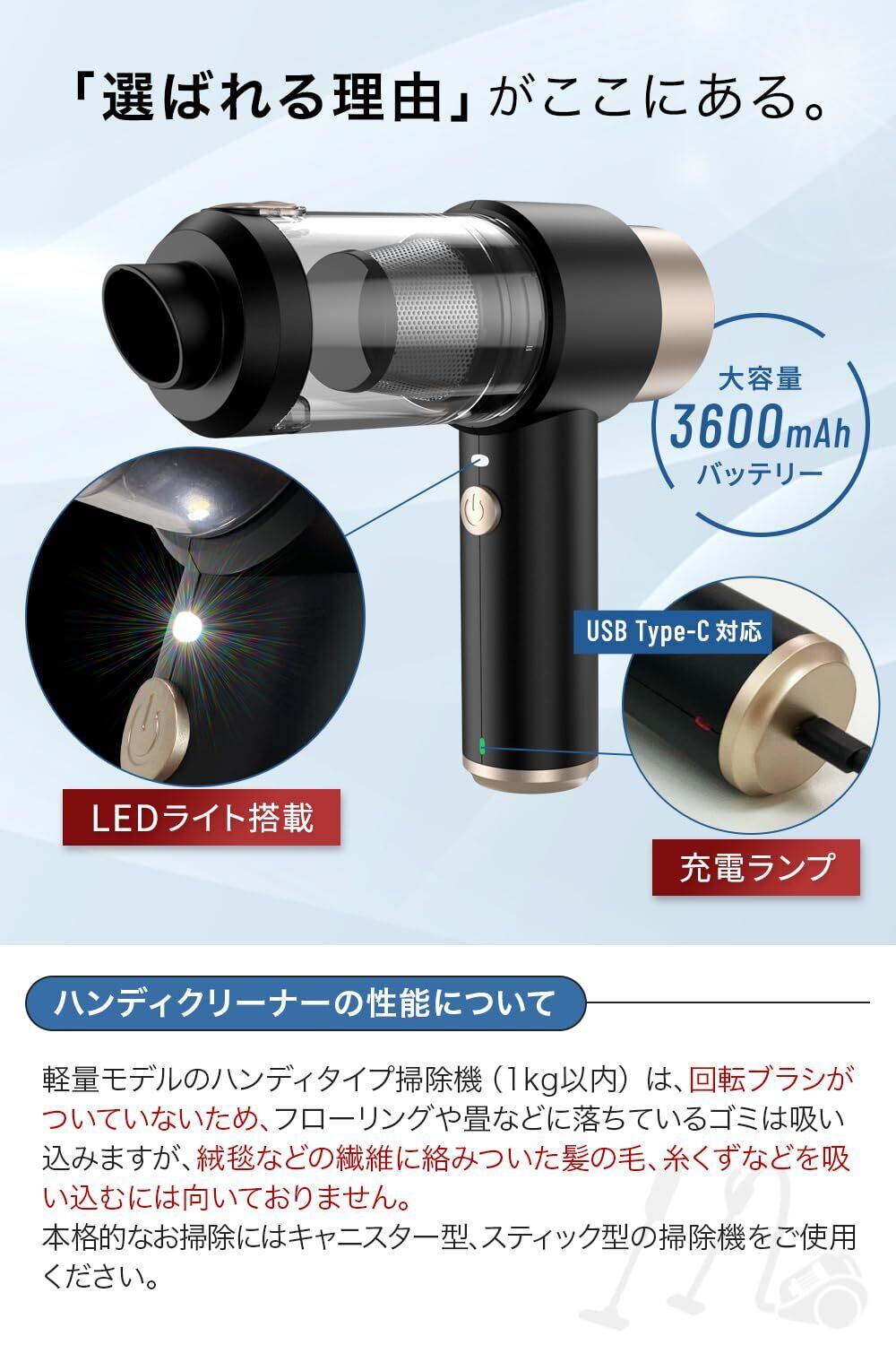 【 手軽に使えるクリーナー 】ドライヤータイプのデザインで、重さはわずか 400g と 業界最軽量クラス の ハンディクリーナー です。コードレス タイプで、わざわざ 掃除機 を出さなくても気になるところを パッとお掃除 できます。車用掃除機 として、子供の食べカスなどの 掃除機 として、または部屋のちょっとした 掃除 などにお使いいただけます。