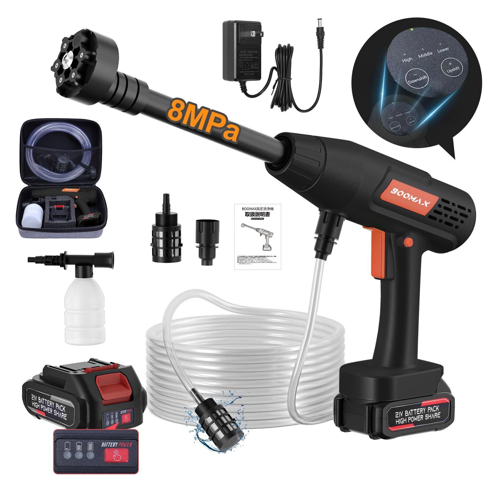 BOOMAX 高圧洗浄機 コードレス 充電式 8MPa圧力 20000mAh 最大噴射距離10M 3段階噴射モード 噴射水量8L/min マキタ互換バッテリー 洗車店監修 高圧 洗浄機 収納ボックス付き 日本語取扱説明書 6in1ノズル バッテリー残量表示 階段/庭/外壁/屋外/窓/玄関/ブロック塀/ベランダ/年末大掃除 ブラック+赤い