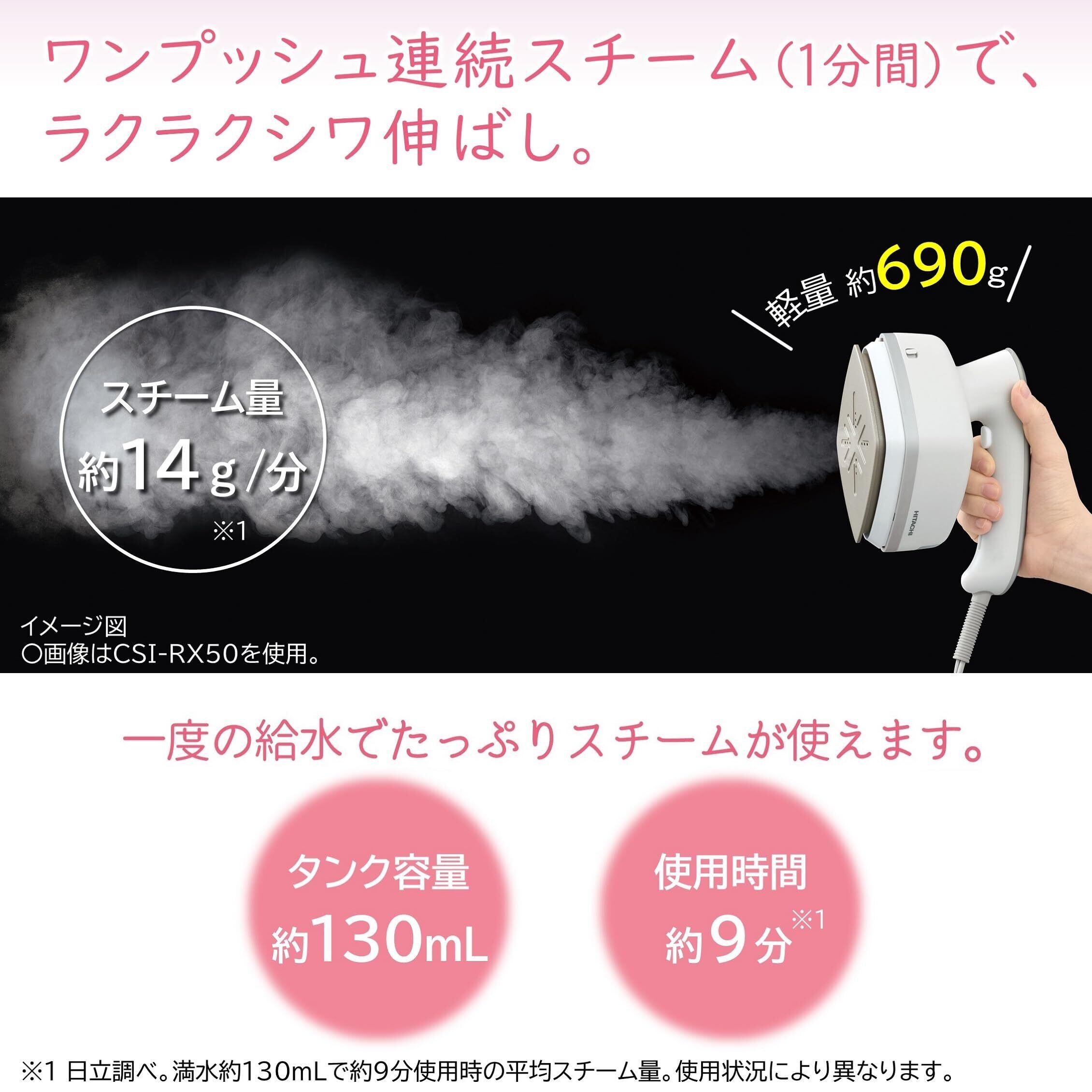 日立(HITACHI) 衣類スチーマー スチームアイロン CSI-RX5BE C ミルキーグレー 連続スチーム ブラシ付き
