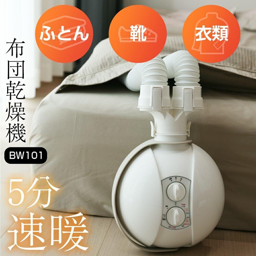 【一台多役&マットなし布団乾燥機】布団乾燥、布団温めはもちろん、衣類乾燥や靴乾燥、収納場所の脱臭や湿気対策、ドライヤーなどもこの1台で全ての役割を果たすふとん乾燥機です。マット不要で敷ふとんと掛ふとんの間に直接差し込むだけで温風を送り込み、準備や片付けの手間もかからないし、天候や時間にも左右されず、ちょっとした合間に対応できるので、毎日使いたい方や、複数枚のふとんを頻繁に温める方には楽々使えるマットなし布団乾燥機です。花粉が気になって外に洗濯物を干しづらい春先から、湿度が高くなり、ダニ対策も欠かせない夏場、さらにふとんに入ってもなかなか手足が温まらない冬場に至るまで、年間を通して大活躍です。