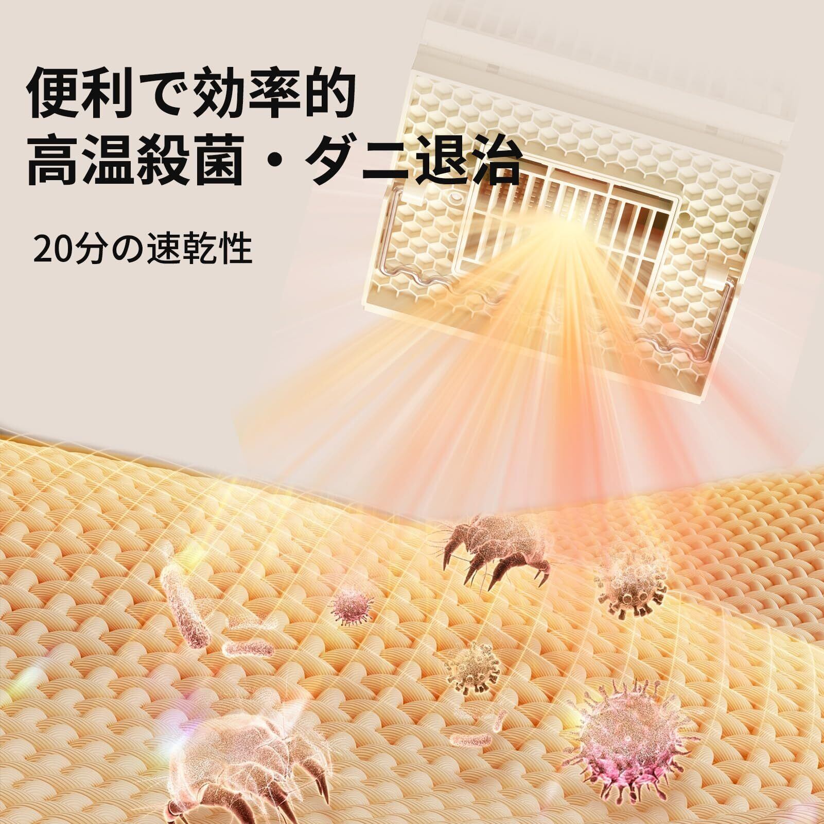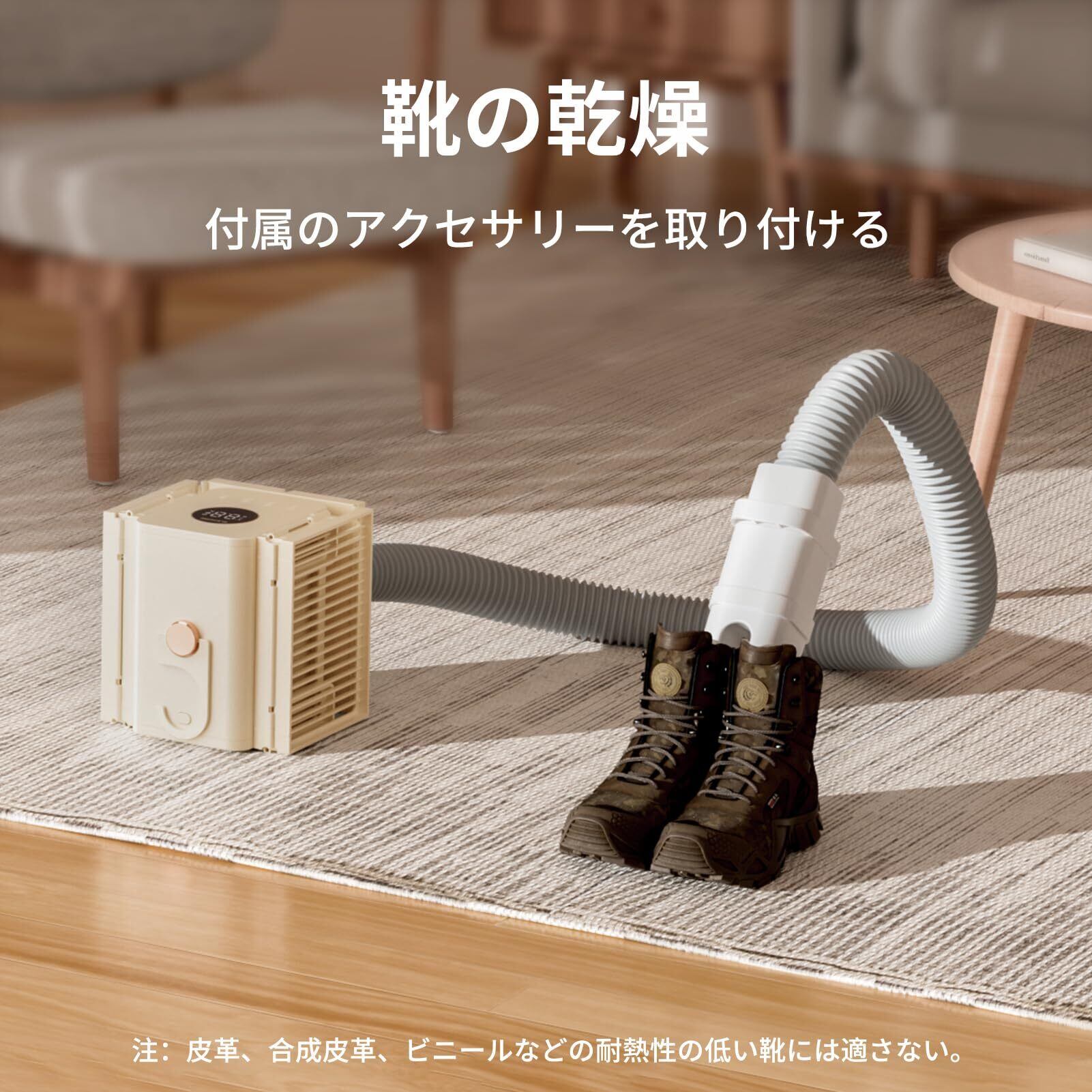 【多機能な乾燥機】:冬や雨の日には衣類を乾かすことはもちろん、梅雨時には布団も快適に乾燥できます。寝る前に使用すると、柔らかくてふんわりした蒲団を温め、心地よい睡眠を提供します。さらに、様々な種類の靴も乾燥可能で、ペットの毛並みも手軽に乾かせます