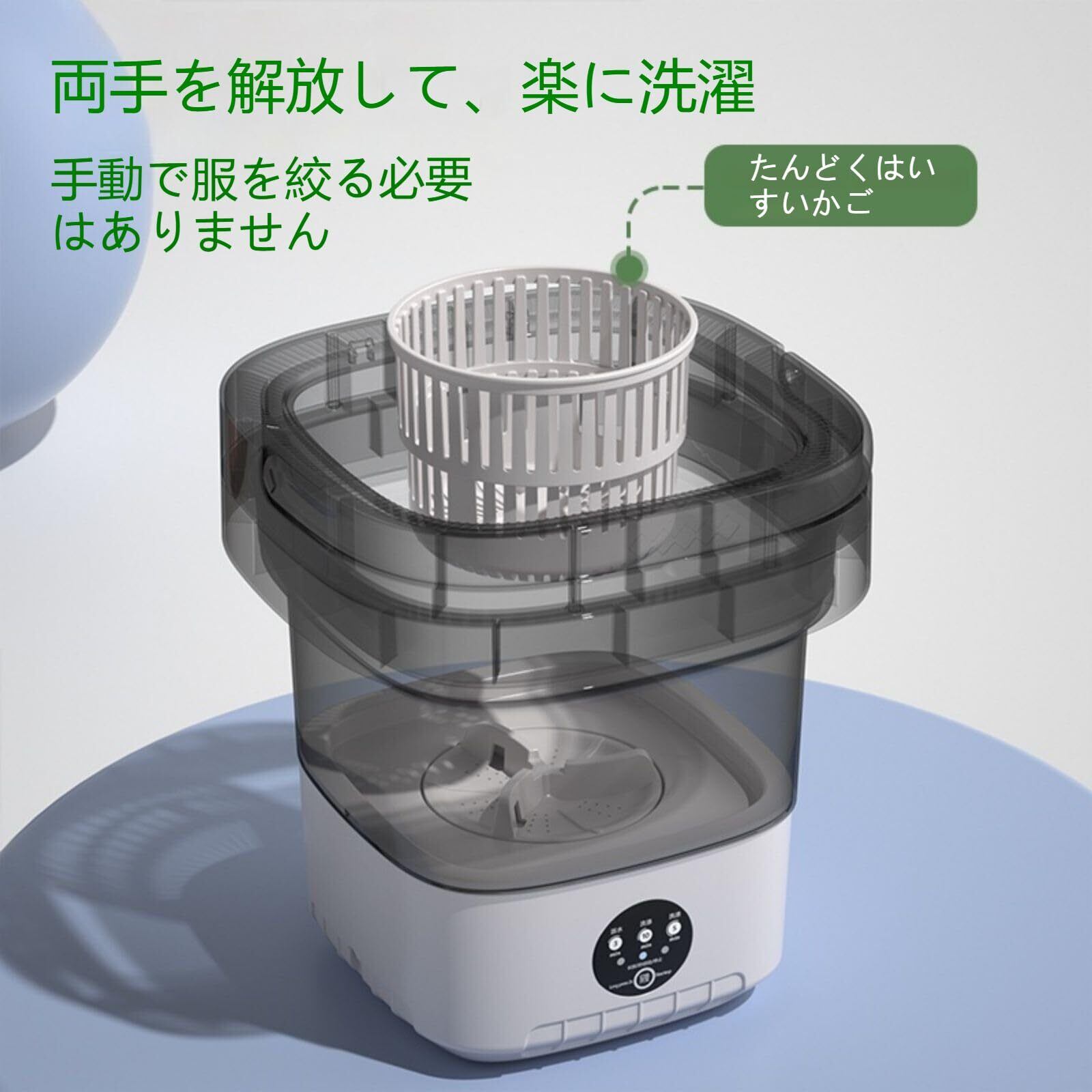 【12 Lポータブル洗濯機】小さな衣類を個別に洗濯するために設計されています。この小型折りたたみ式洗濯機は、下着、靴下、赤ちゃんの服、タオルを徹底的に洗浄し、衣類の衛生的で新鮮なものを確保することができます。