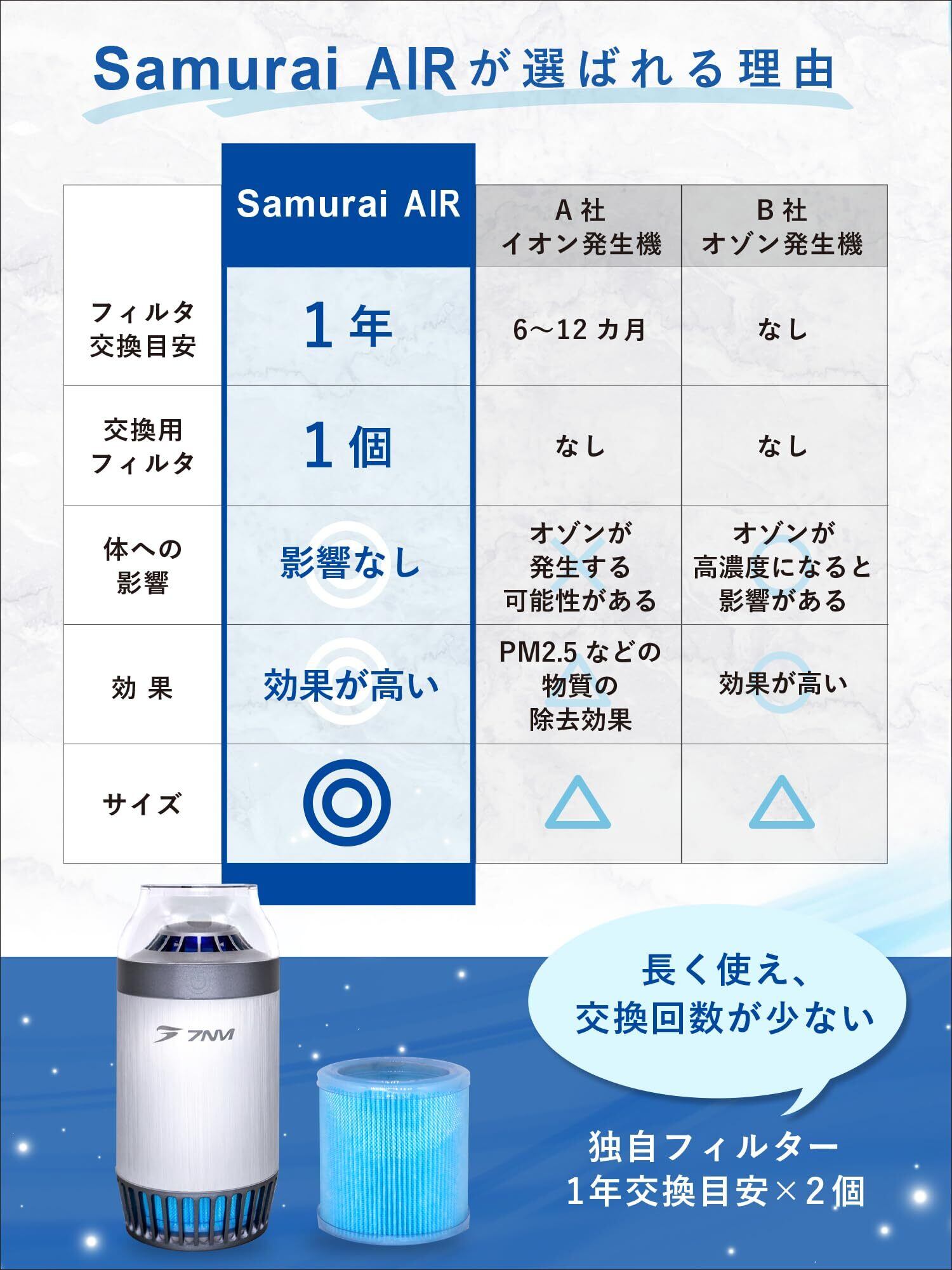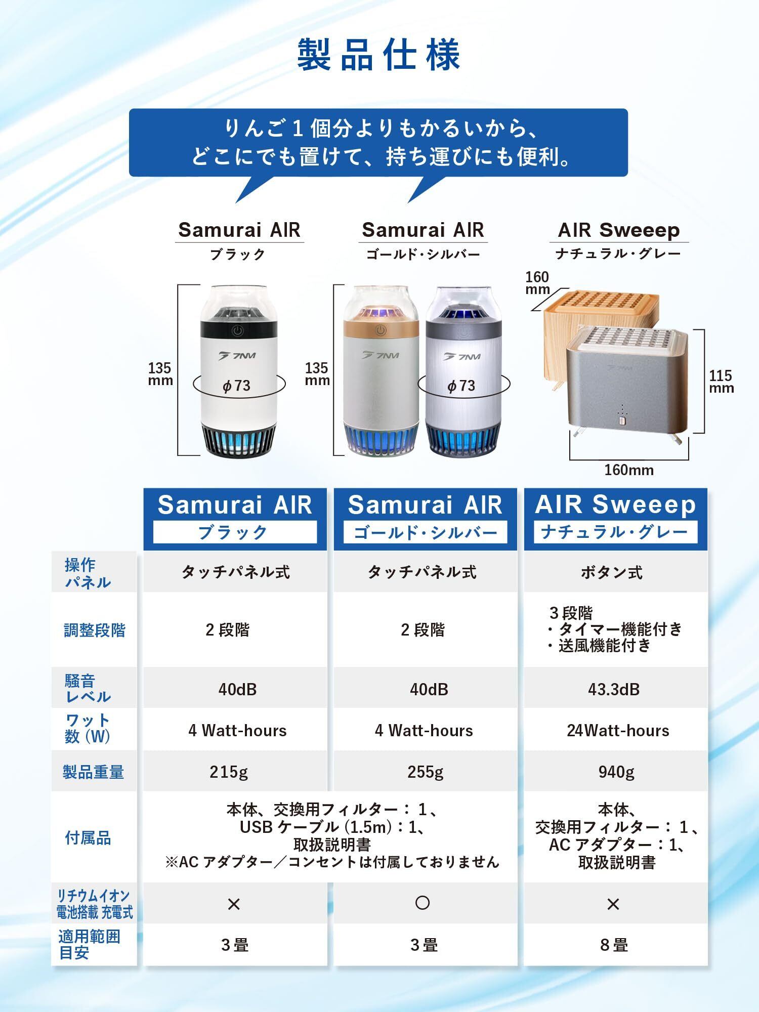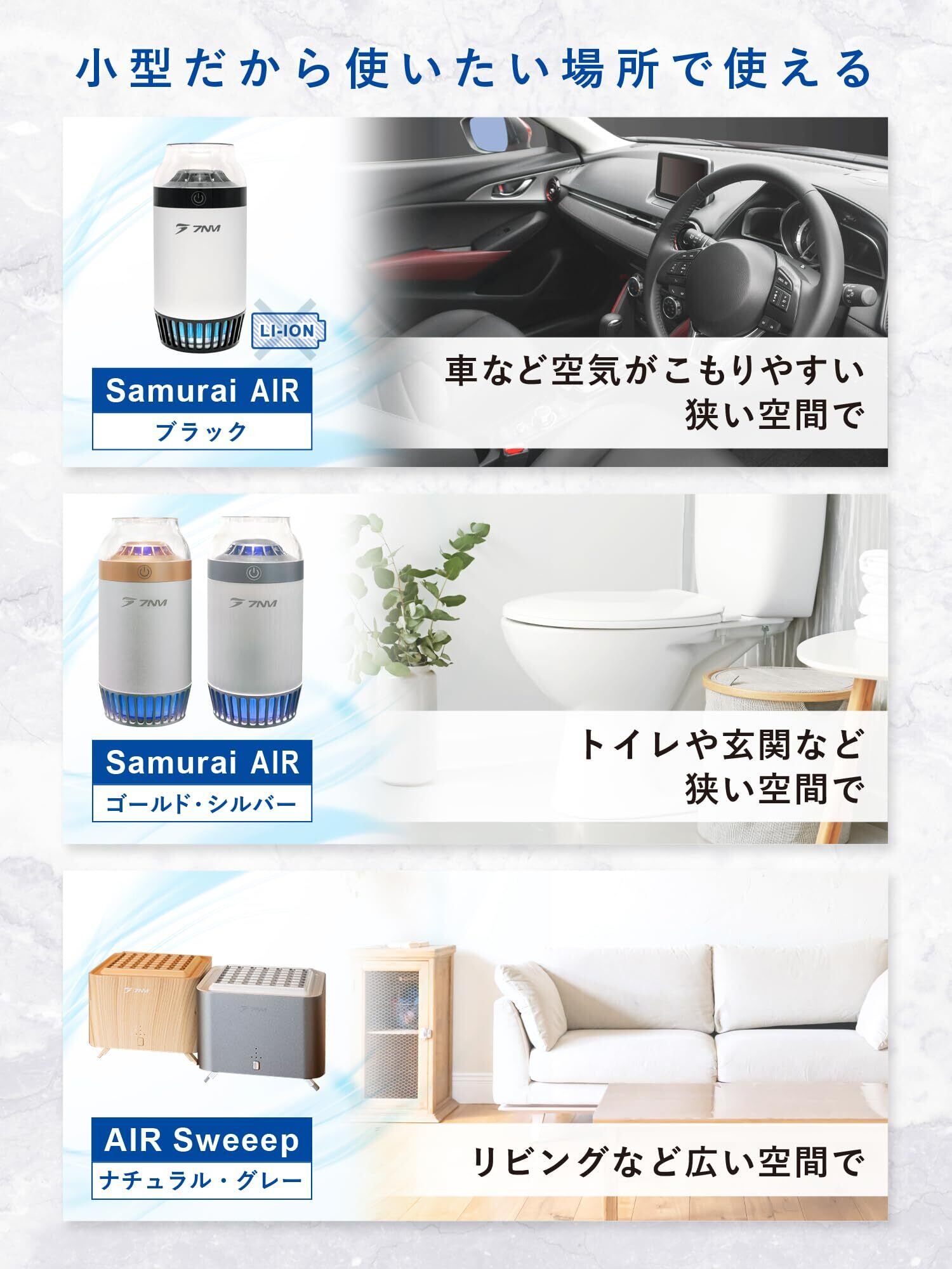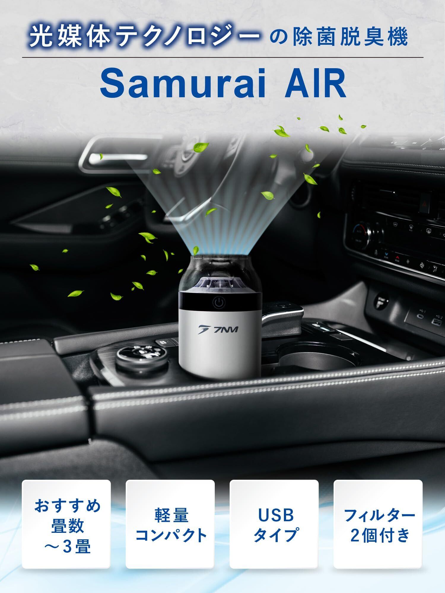 【車載用バッテリー非搭載】7NM 日本ブランド 花粉 脱臭強化 脱臭機【SAMURAI AIR】 ポータブル ウィルス抑制 タバコ 小型 光触媒 除菌 軽量 コンパクト ペット 消臭 臭い HEPA フィルター付属(BLACK)