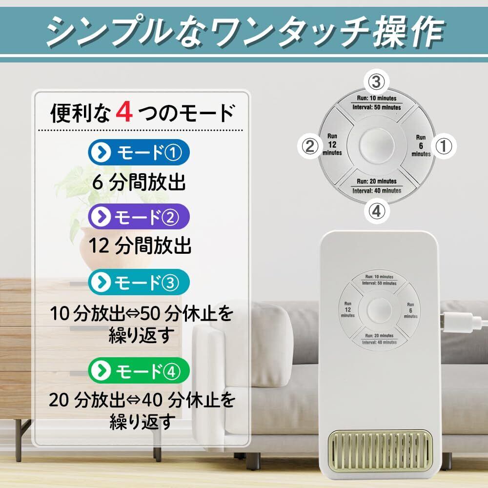 使用範囲3~10畳、内蔵バッテリー無し、電源コードタイプUSB Type-C(約1m)。トイレやペットの匂いを強力消臭!玄関の消臭機としても活躍。