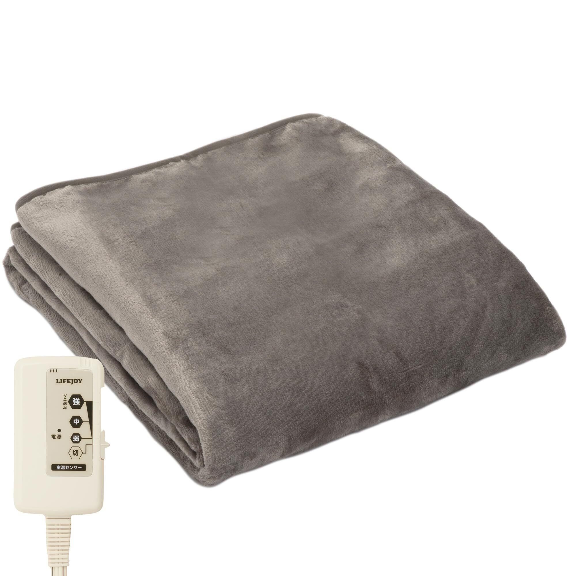 ライフジョイ 電気毛布 掛け 敷き 兼用 188cm×130cm 洗える 両面フランネル 室温センサー付 タイマー機能無 ふわふわ グレー JCBR803H