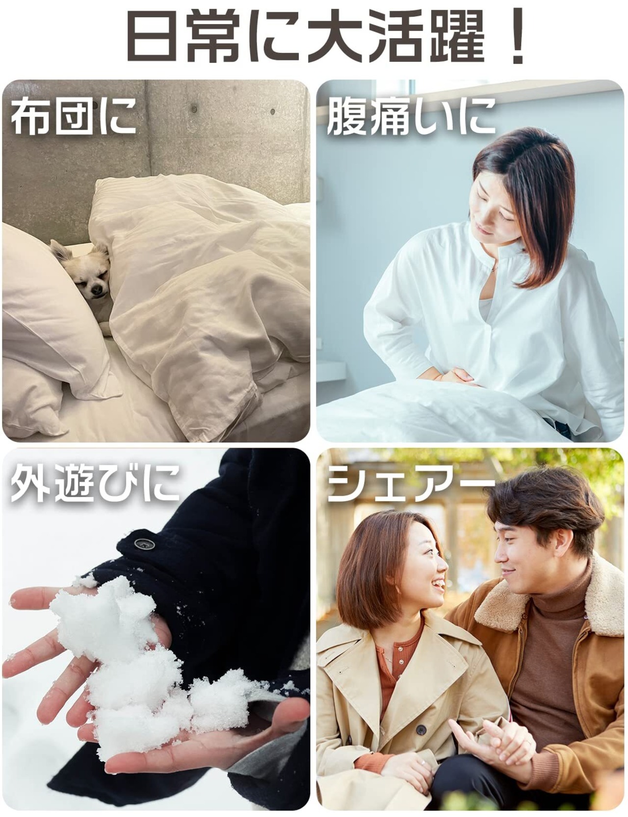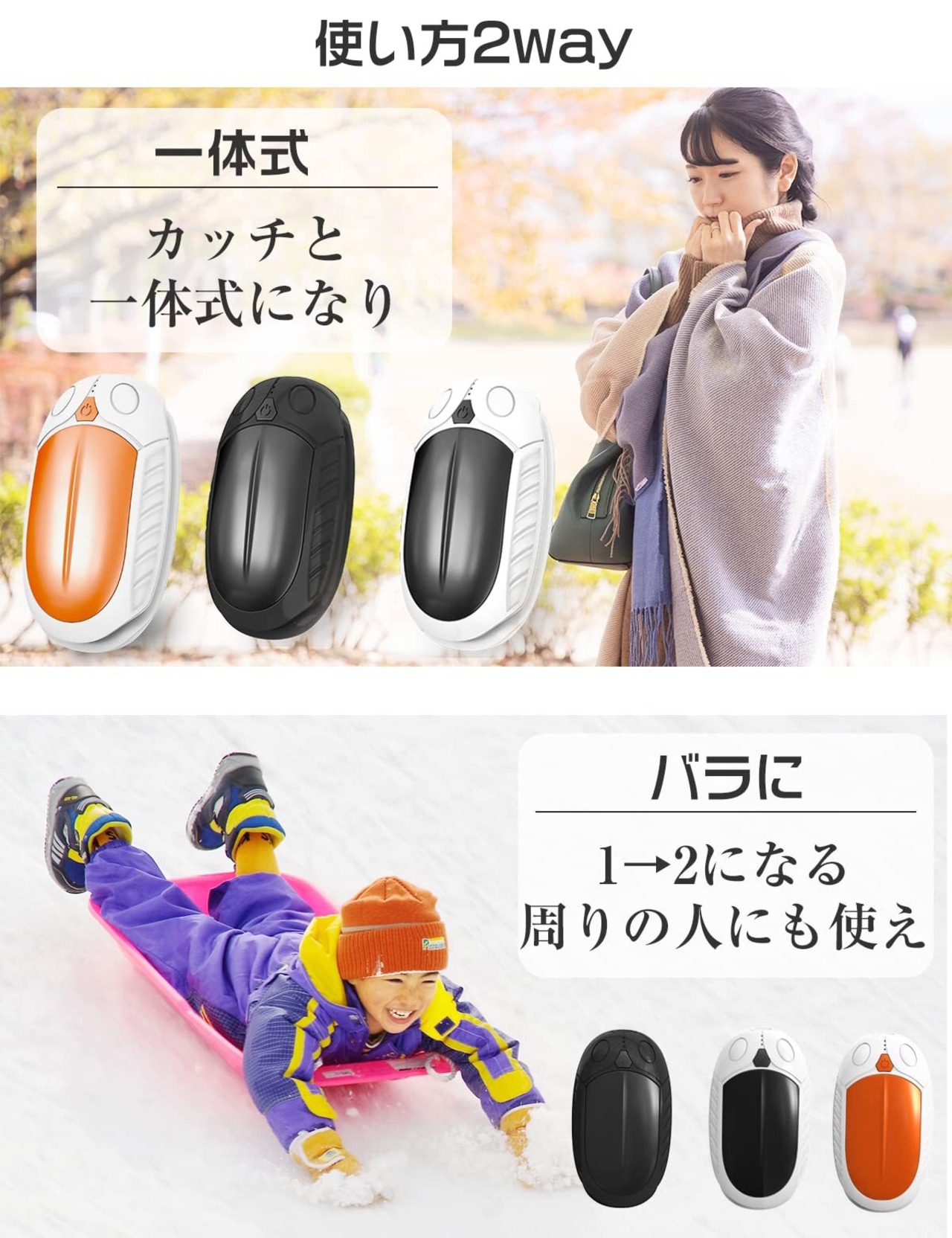 【電気カイロ1台2役】小型・軽量の電気カイロは5000mAhのリチウム電池を搭載しており、2~3時間でフル充電でき、1日5時間連続加熱することができます!従来の一体式の電気カイロと違って、これ分離設計になります。温めしながら、両手自由に動けます。それに、周りの人ともシェアーにできます。