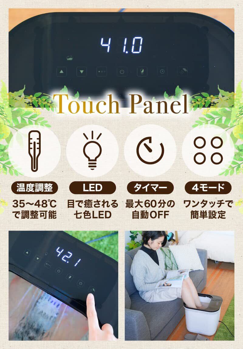 【容量】18~24L 【温度調整】35~48℃(1℃刻みで調整可) 【タイマー】10~60分(10分刻みで調整可) 【バスソルト】使用可
