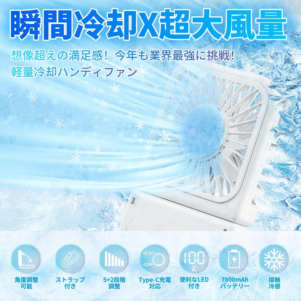 【2025新モデル -20℃瞬間冷却】Finect 携帯扇風機 冷却プレート付き ハンディファン 7000mah 大容量 手持ち扇風機 静音 強力 Type-C急速充電 超軽量 ハンディ扇風機 モバイルバッテリー機能付き 卓上 首掛け 折りたたみ オフィス スポーツ観戦 ギフト プレゼント