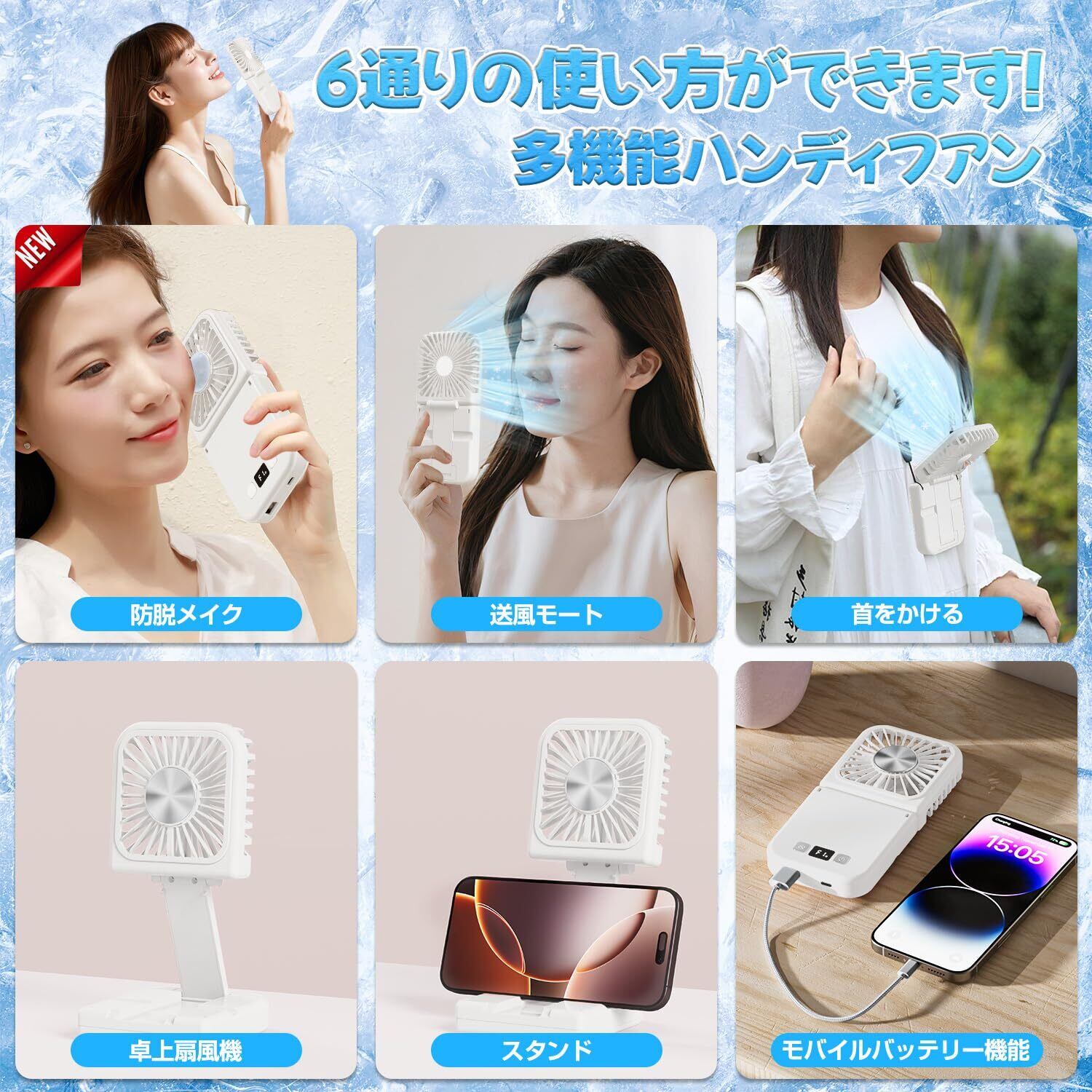 【6WAYマルチクーリングデバイス】手持ち/ネックホルダー/折り畳み/デスクスタンド/スマホスタンド/モバイルバッテリーの6機能を一体化。通勤時は首掛けハンズフリー、オフィスでは角度調節可能なデスククーラーに変身。緊急時はスマホ充電器としても活躍。コンパクト折り畳みで収納スペースも最小限!