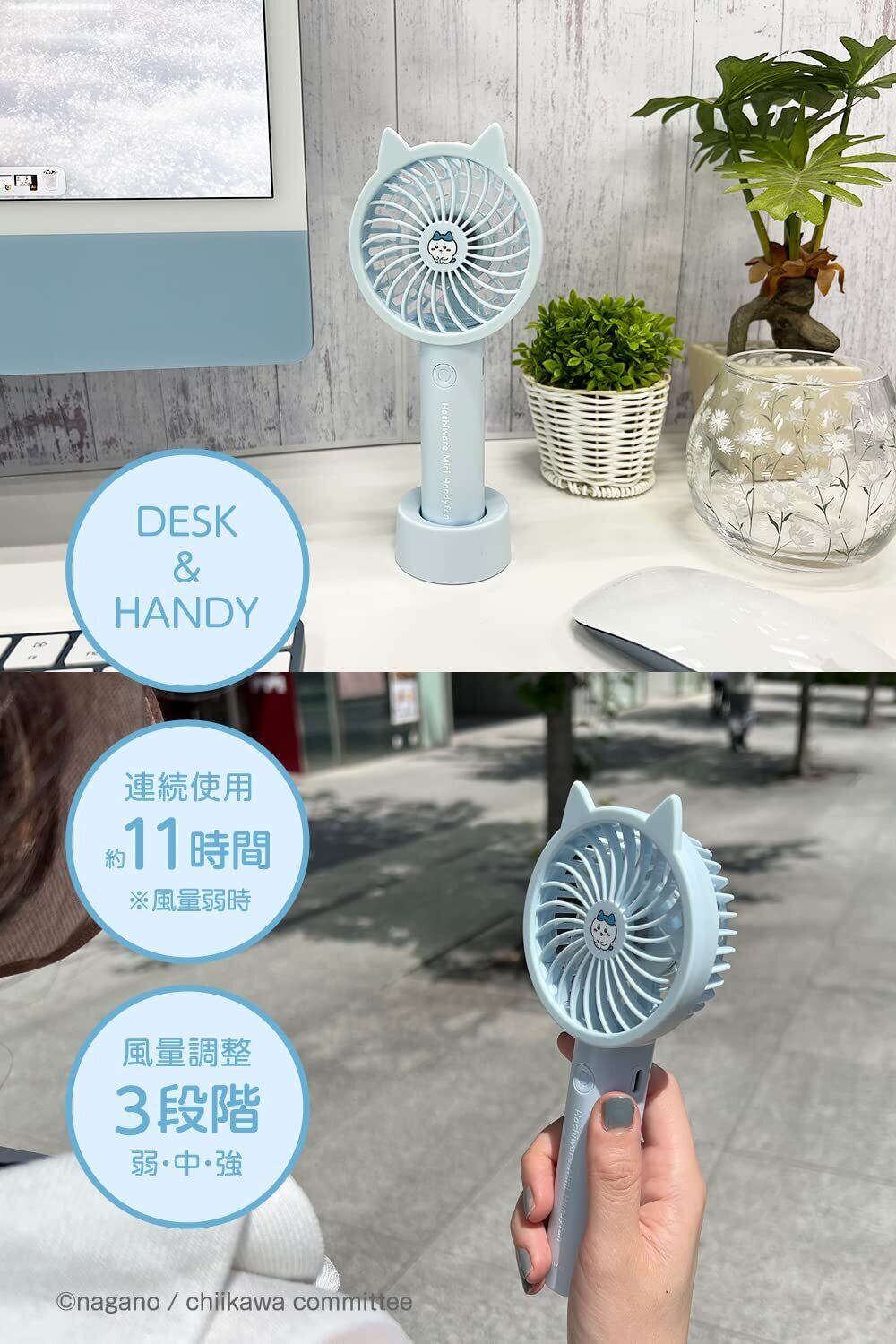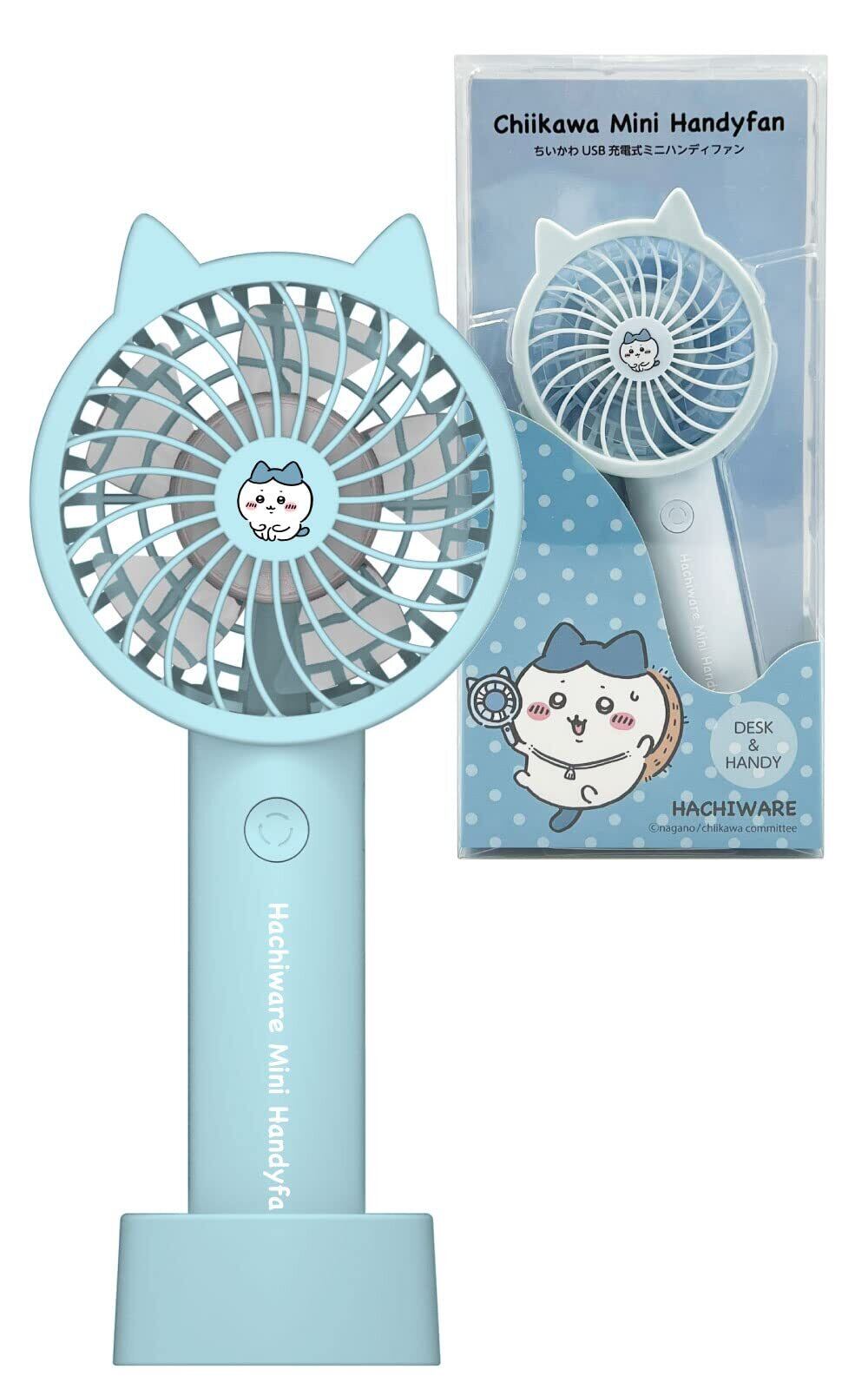 多摩電子工業 ちいかわハンディファン SQ-SK121BB-H (ハチワレ ベビーブルー) シリコン製の耳カバー 取外し可能 スタンド付属 風量調整機能 軽量&コンパクト手持ち扇風機 卓上扇風機 ギフト プレゼントに最適 USB充電 Type-C対応
