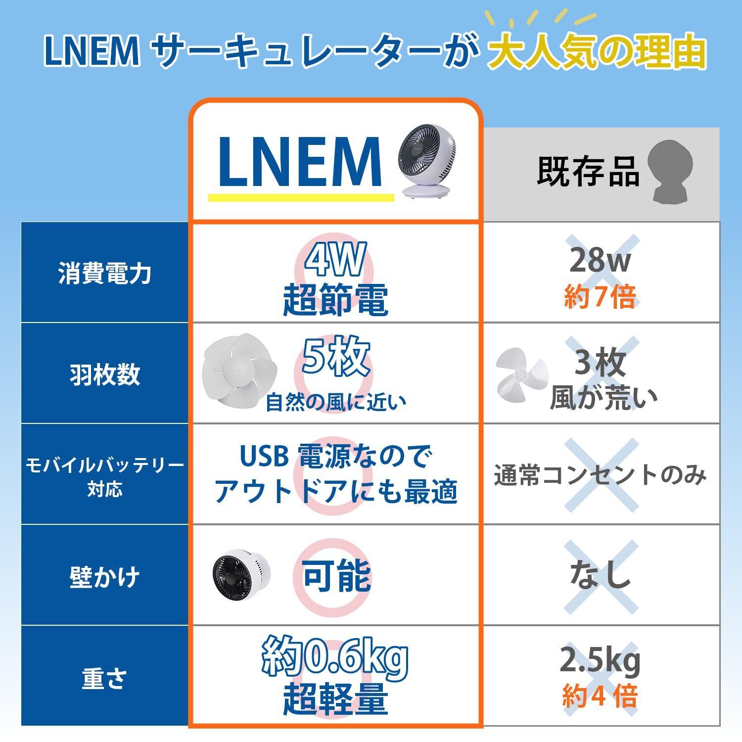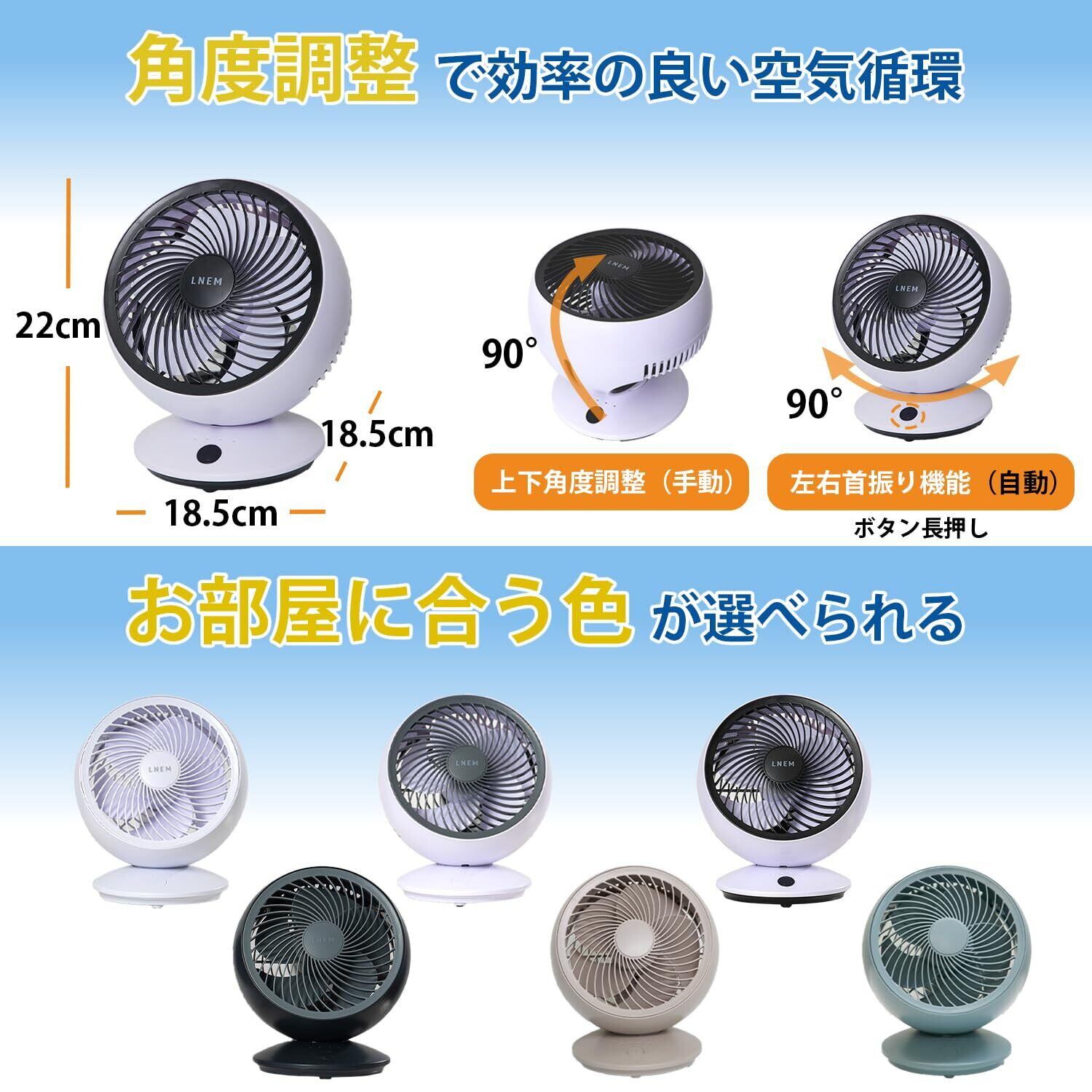 LNEM サーキュレーター 静音 DCモーター 【 超節電 超軽量 USB給電式 壁掛け 5枚羽 細かい風 】 3段調整 モバイルバッテリー接続可 自動首振り 換気 部屋干し 車中泊 8畳 グレージュ